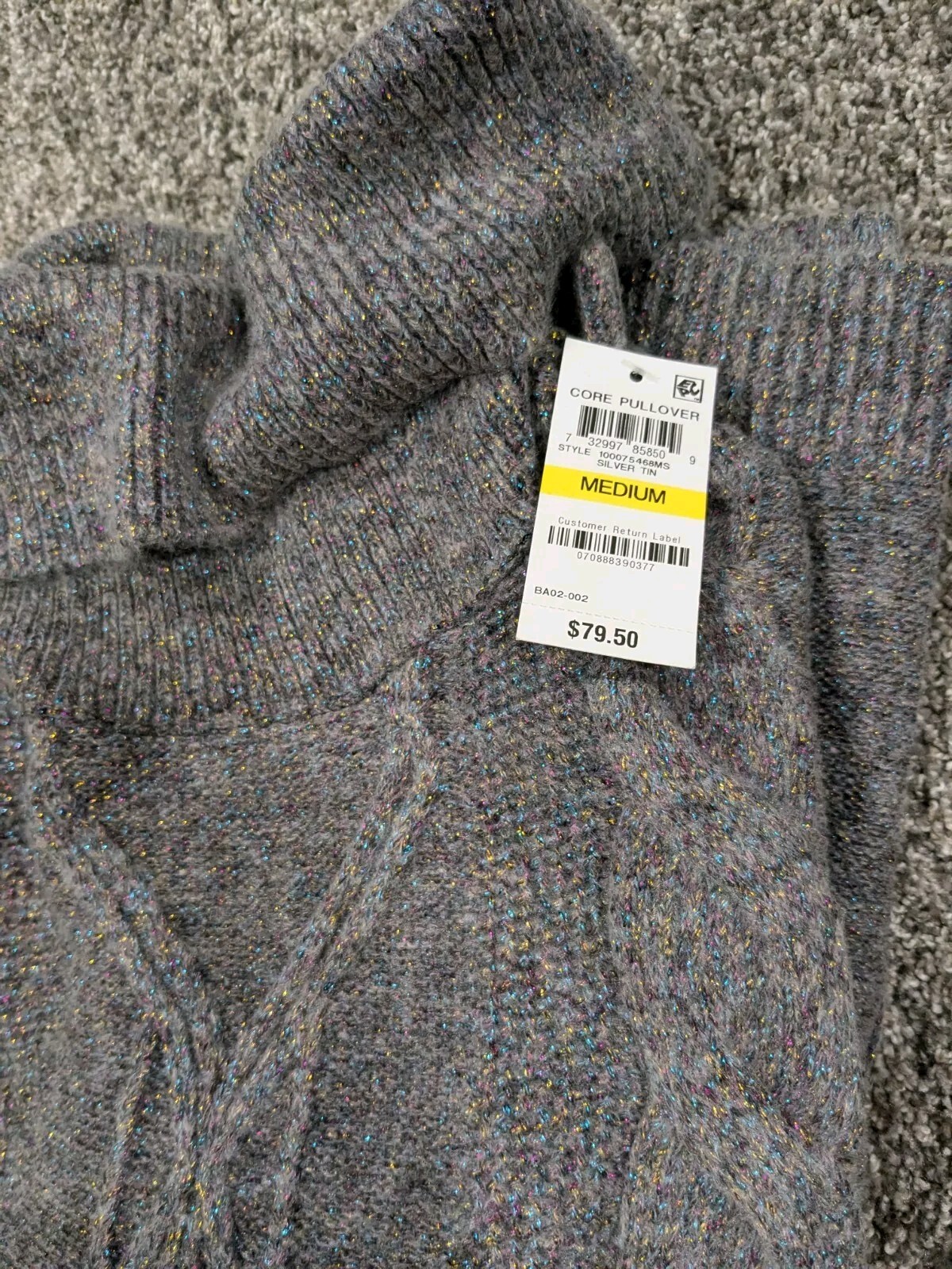 как выглядит Charter Club, Cowl-Neck Cable-Knit Glitter Sweater, Med Gray, Medium фото