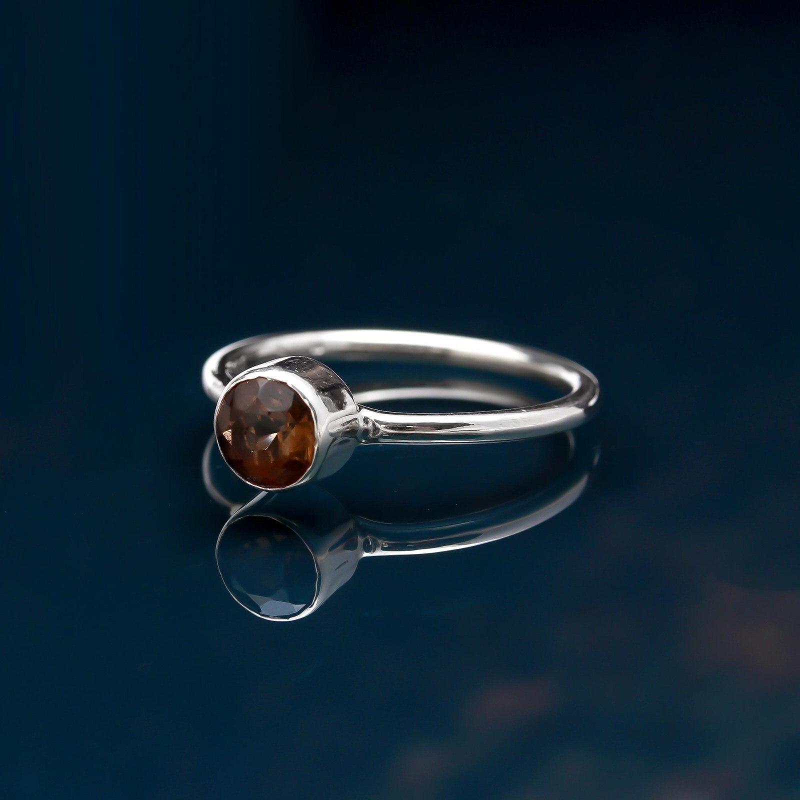 как выглядит AAA Smoky Quartz Round Statement Simple Ring 925 Sterling Silver Dainty Jewelry фото