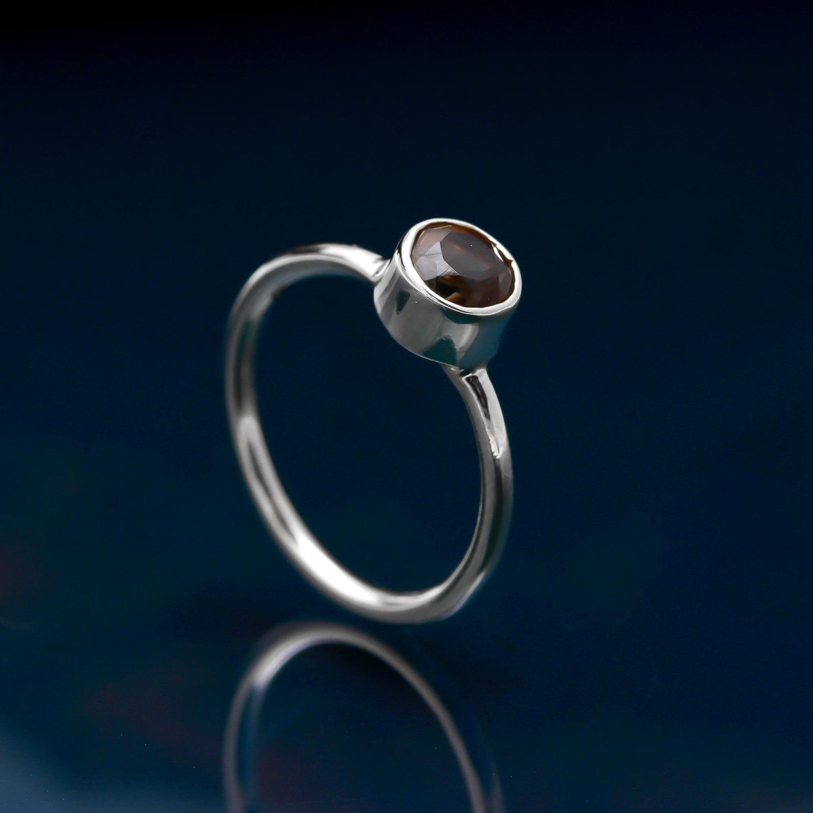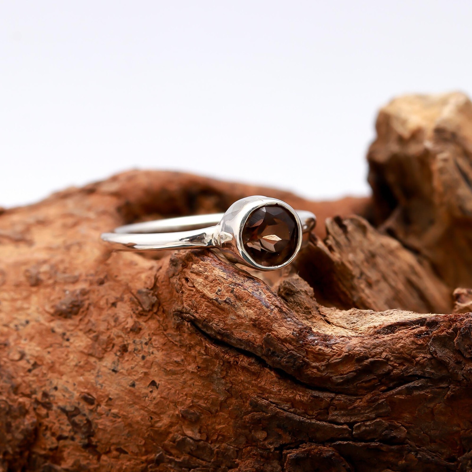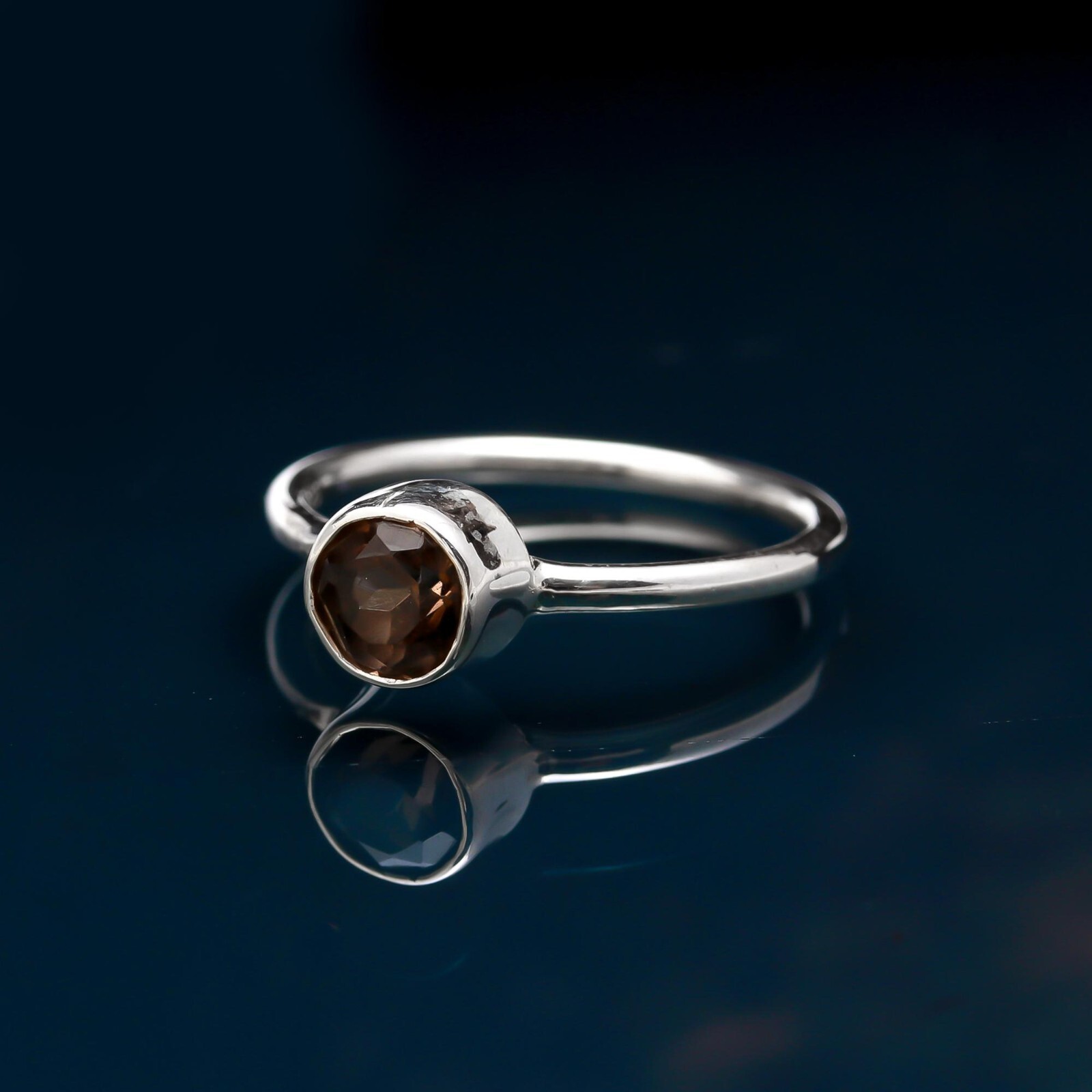 Natural Smoky Quartz Round Shape Ring 925 Sterling Silver Jewelry Christmas Gift
