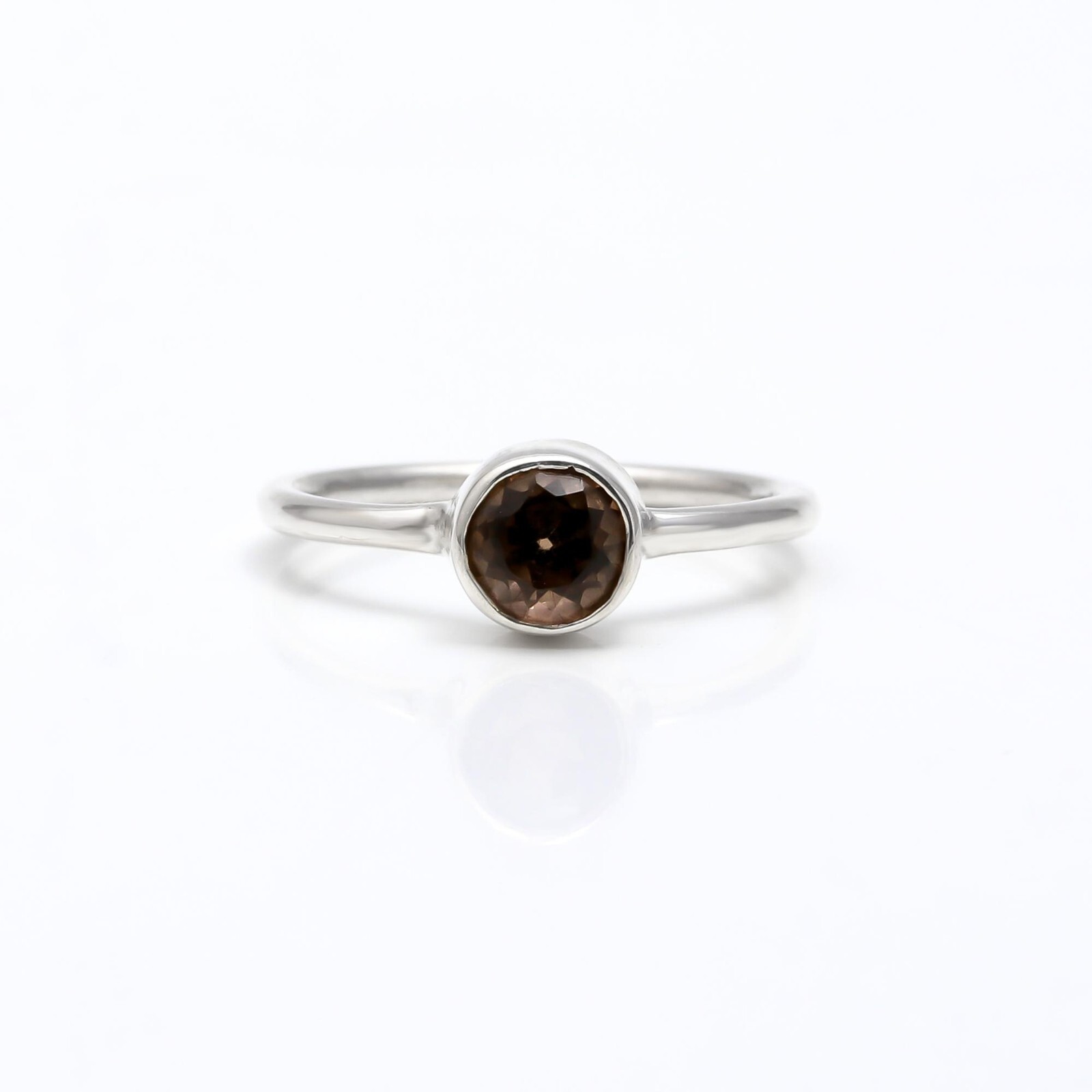 как выглядит Natural Smoky Quartz Round Shape Ring 925 Sterling Silver Jewelry Christmas Gift фото