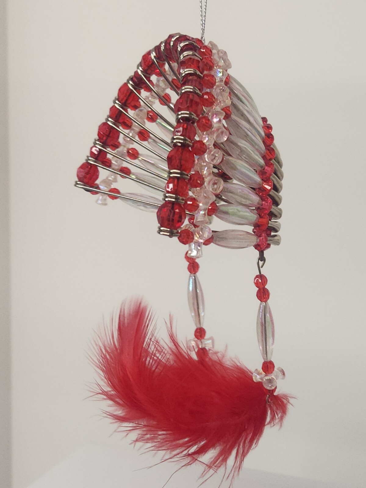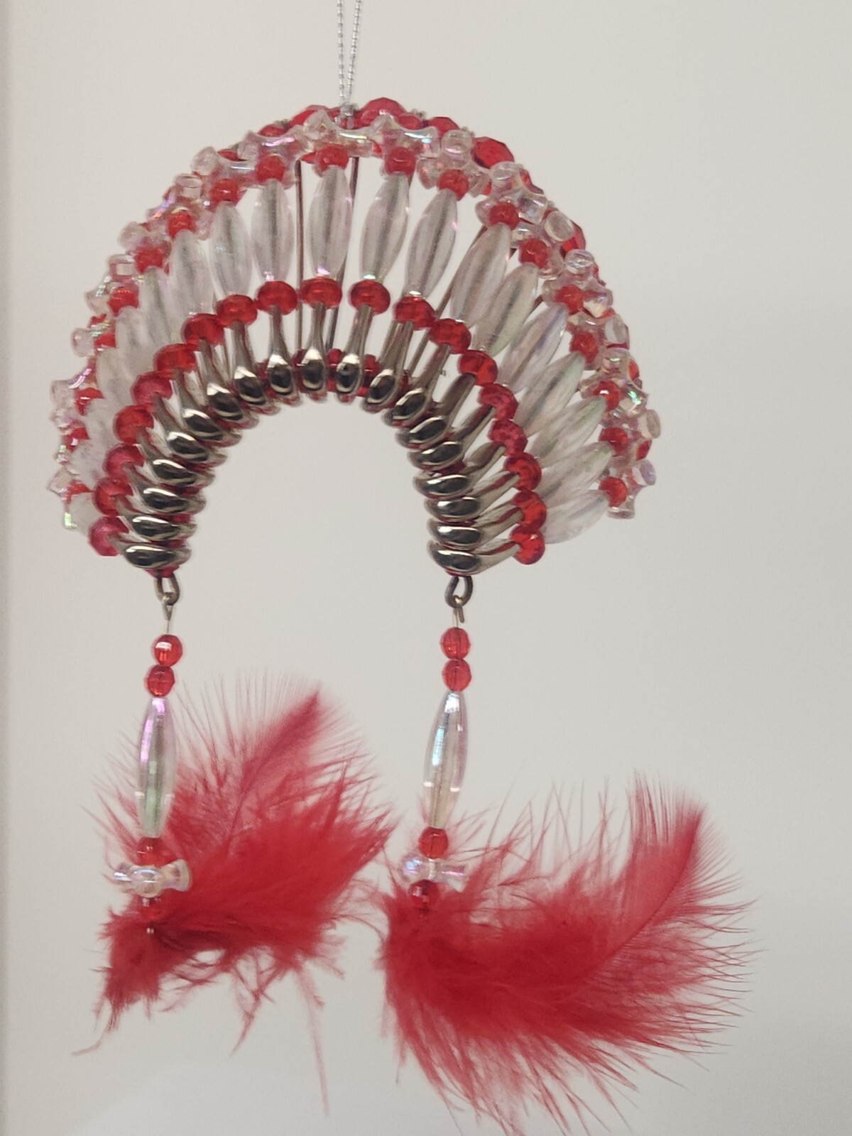 как выглядит Native Indian Headdress Hand Made safety pin art - Car Hanging Beaded Decor Red фото
