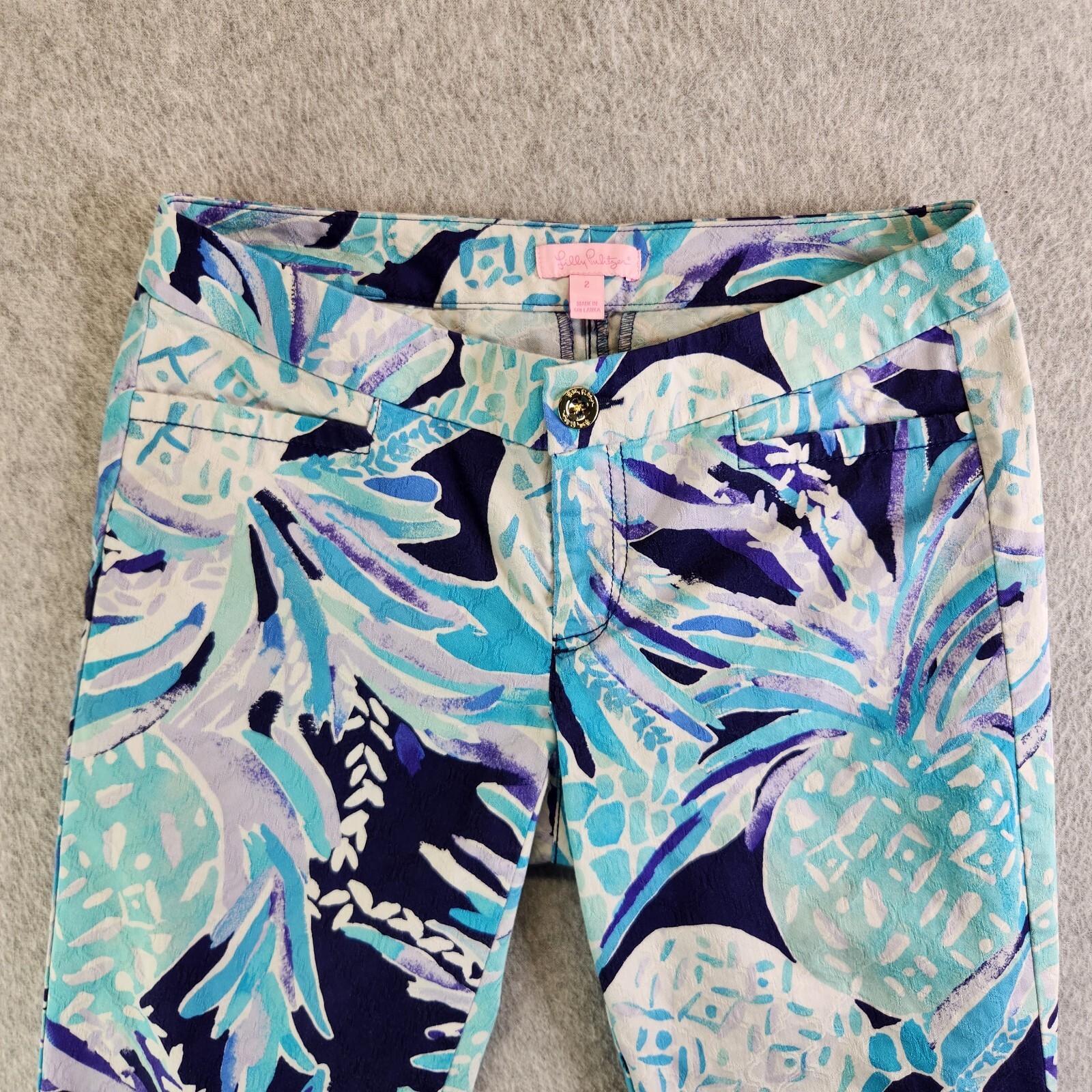 Lilly Pulitzer Pants Womens 2 Blue Pineapple Print Kelly Skinny Ankle Resortwear
