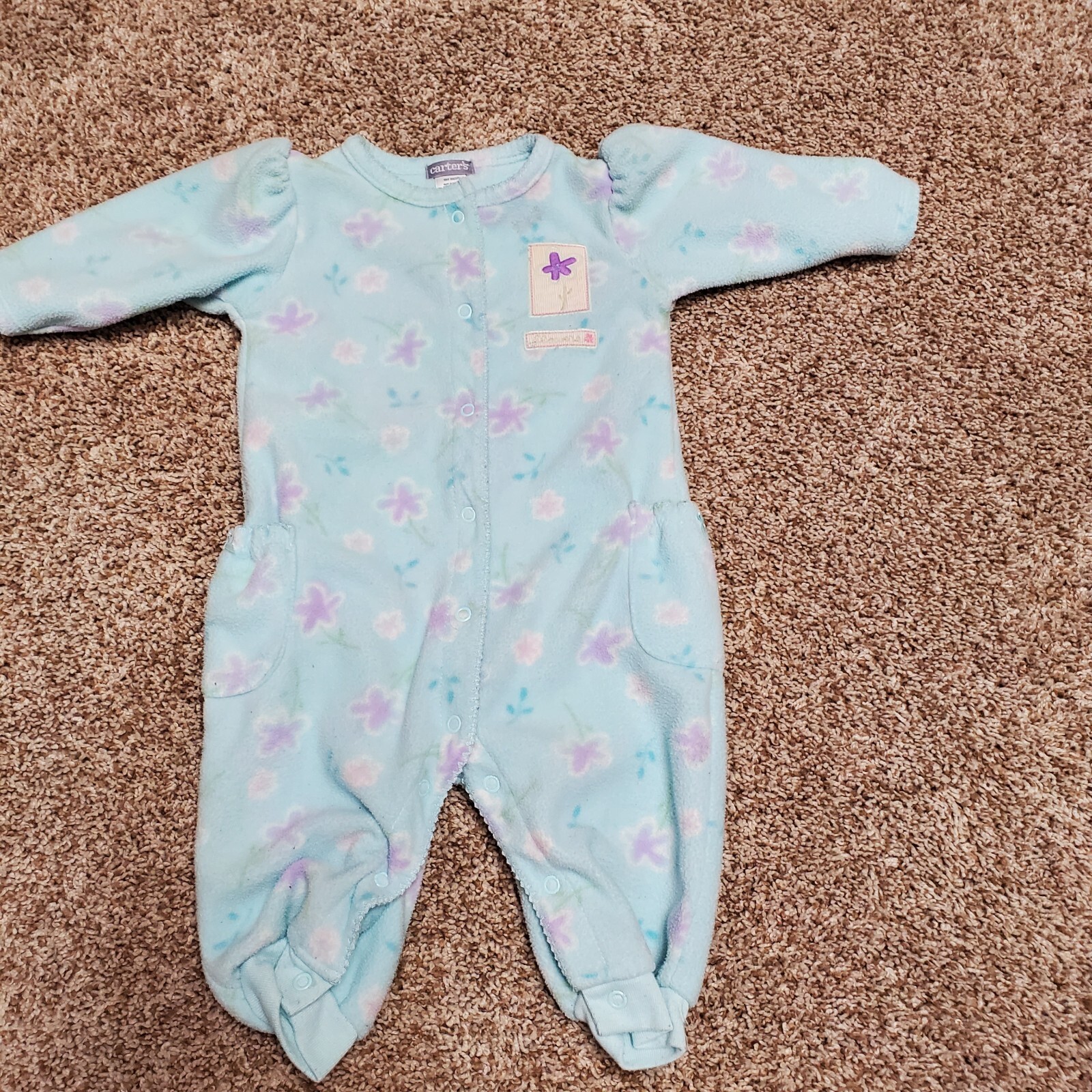 как выглядит Baby Girl footed zip up and button pajamas 3-6m Lot of 2 фото