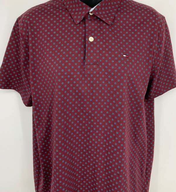 Tommy Hilfiger Mens Maroon Blue Geometric Polo Shirt 100 Cotton Medium NEW NWT