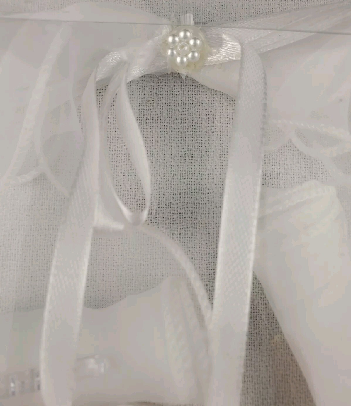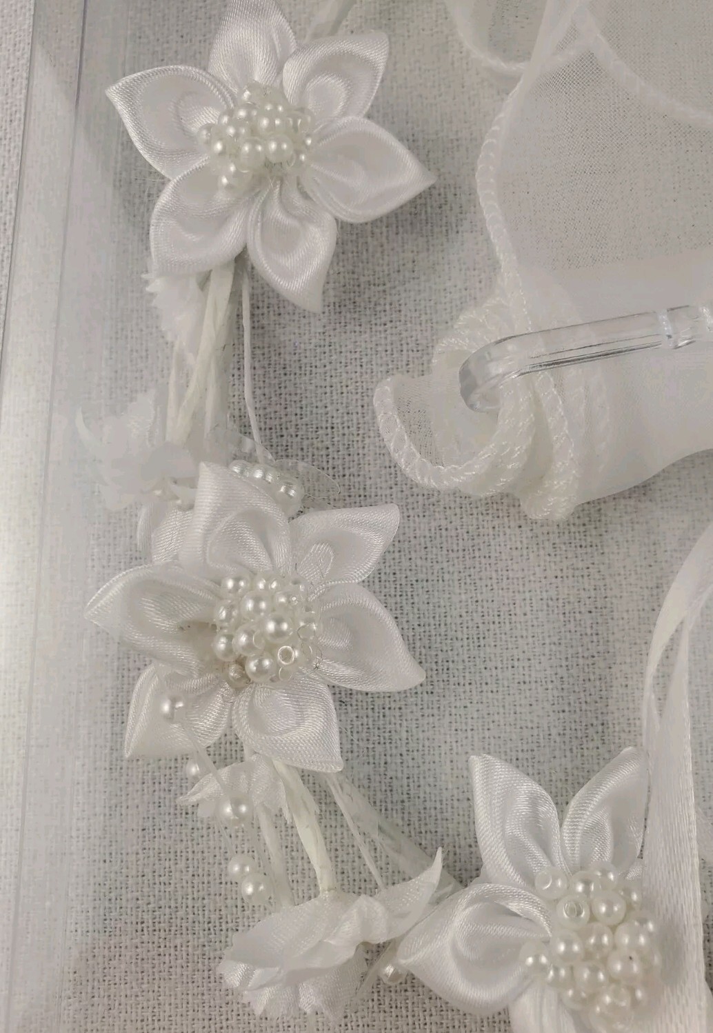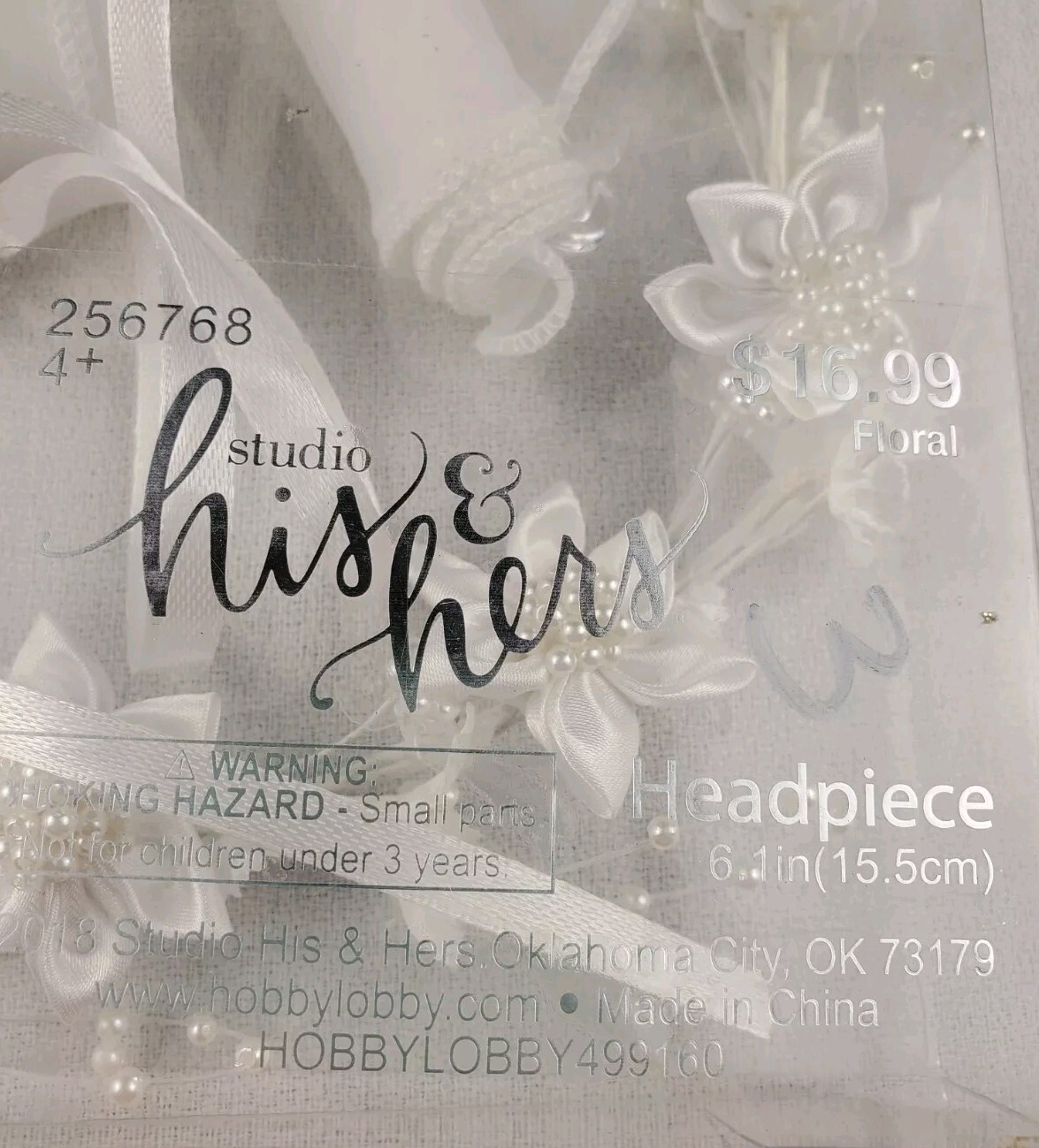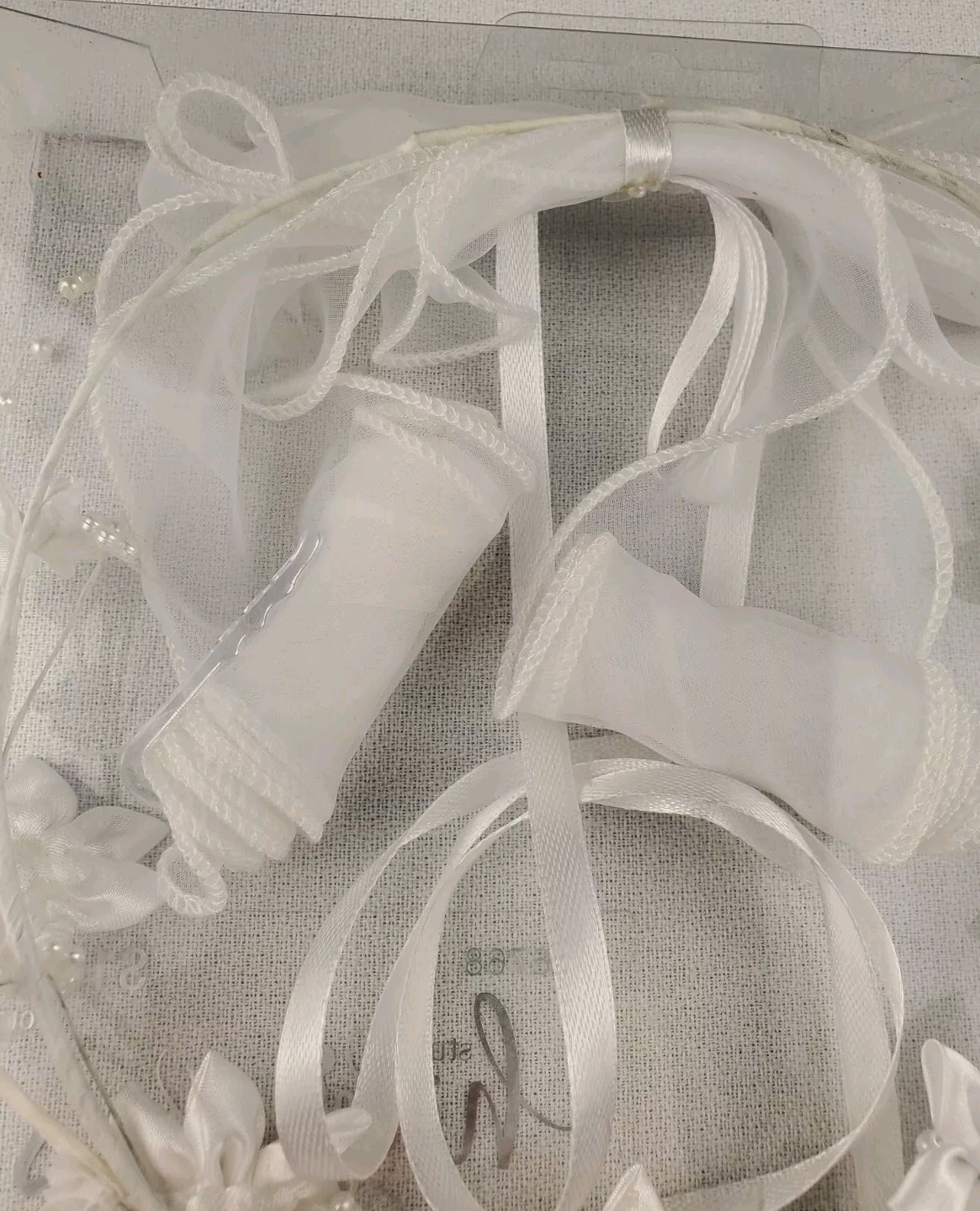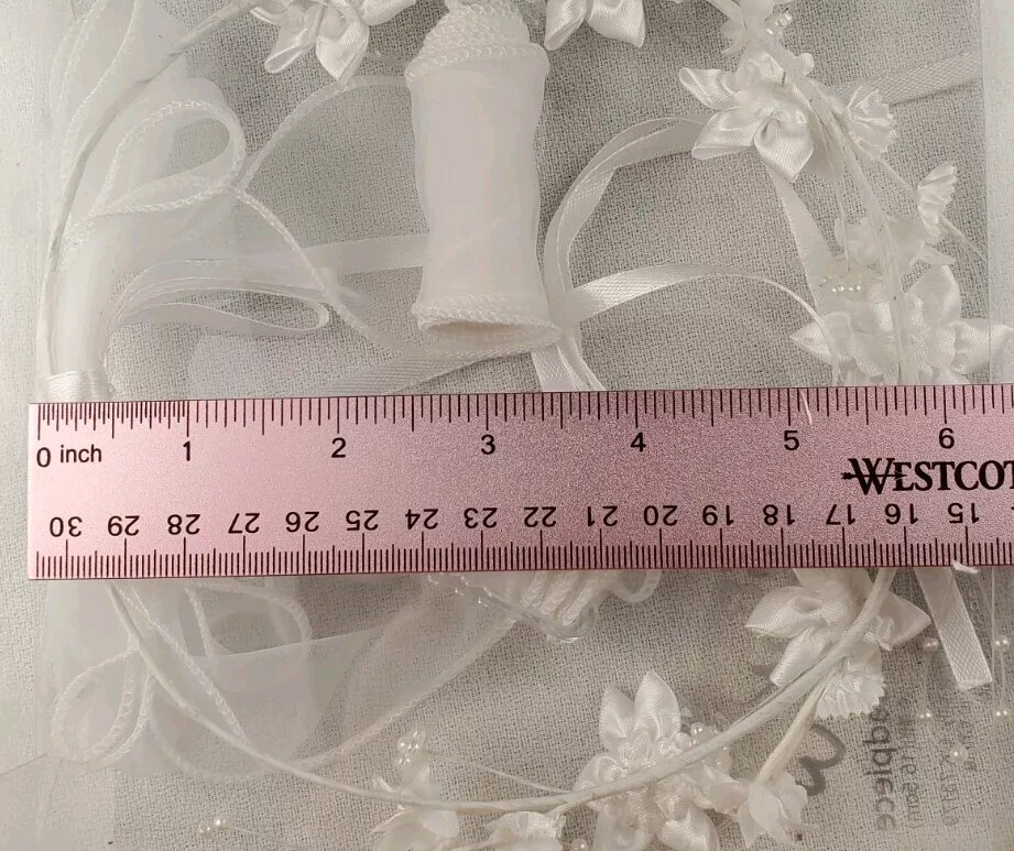 Studio His Hers 6 Bridal Headpiece White Beaded Flowers Ribbons 18.85 Circ.