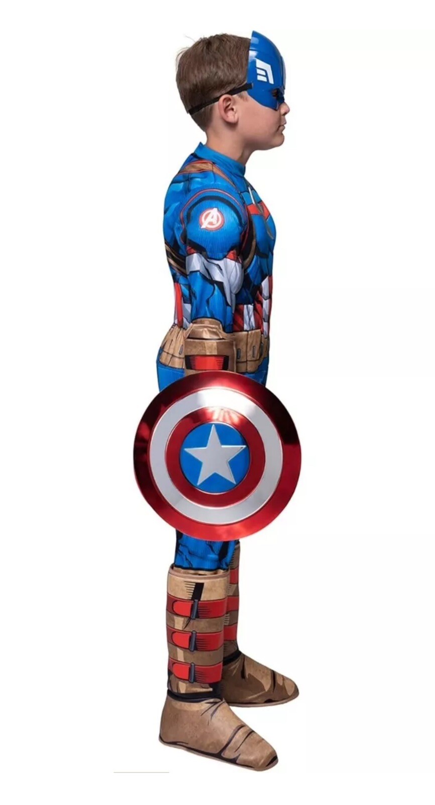 как выглядит Captain America Boys Halloween Costume Jumpsuit Headpiece Shield Mask Gloves фото