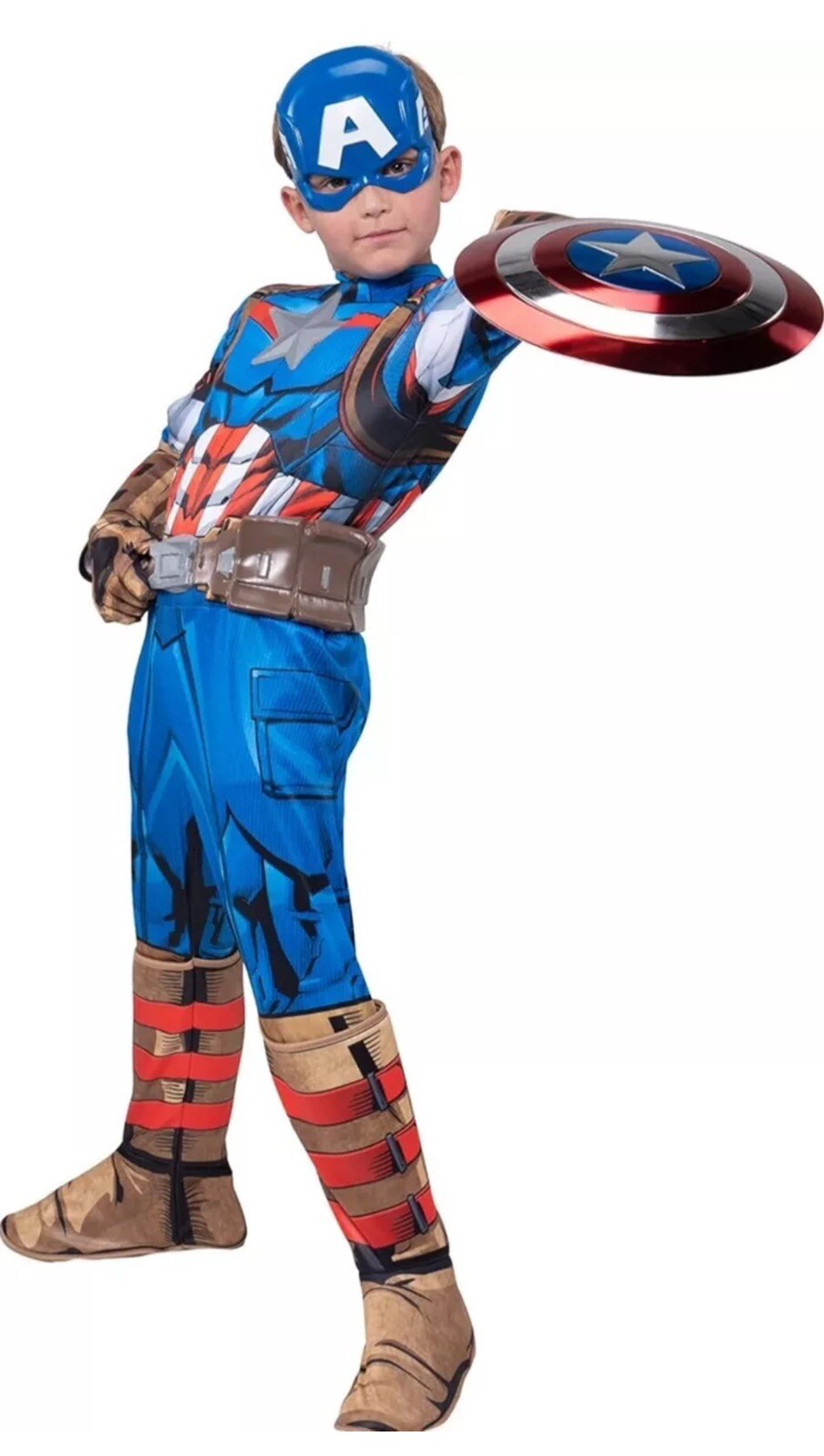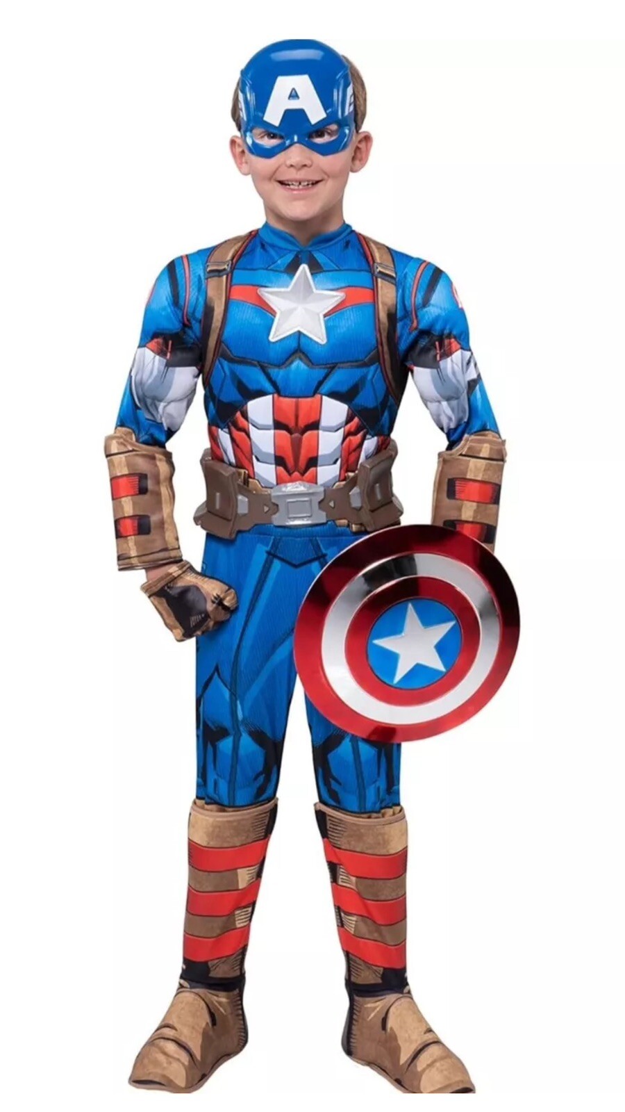 Captain America Boys Halloween Costume Jumpsuit Headpiece Shield Mask Gloves