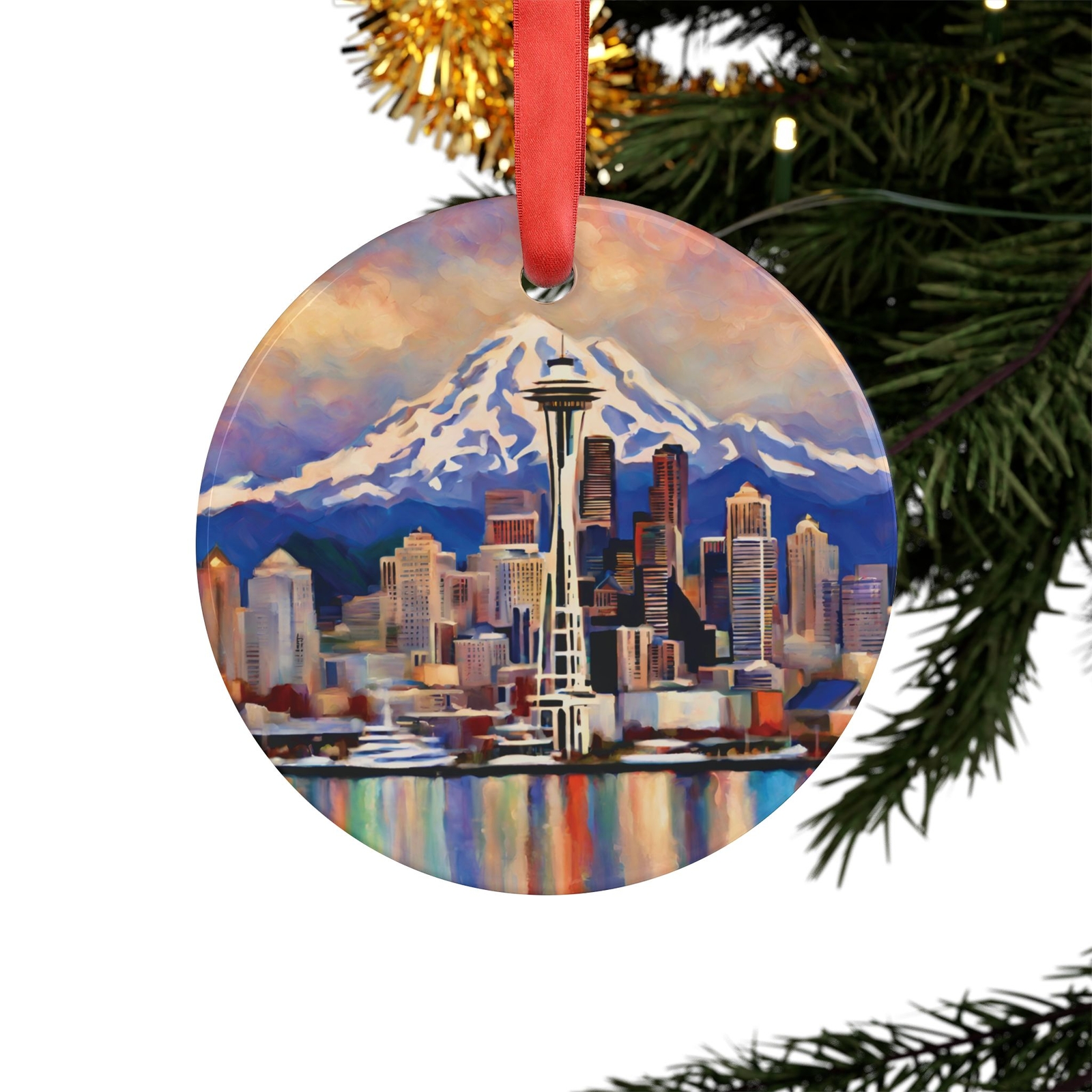 как выглядит SEATTLE WASHINGTON City Skyline, Round Acrylic Ornament, Personalized Gift фото