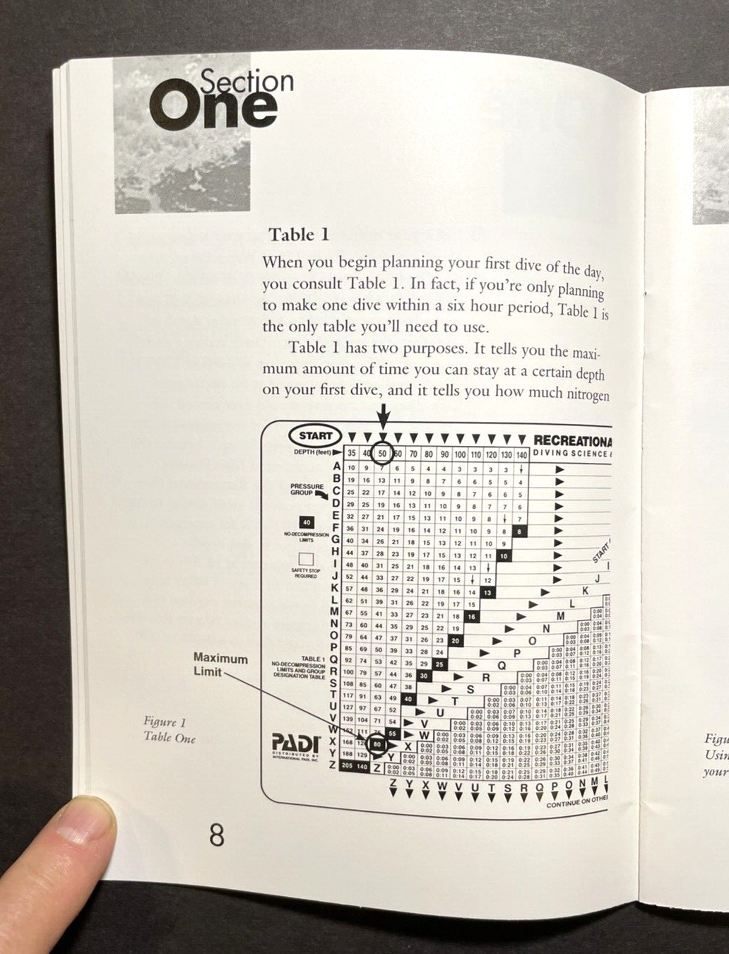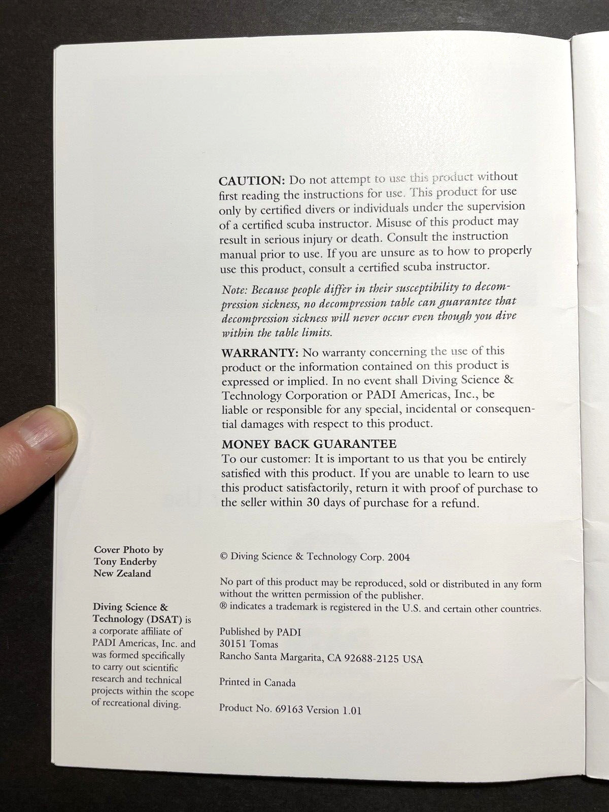 PADI Recreational Dive Planner / Instructions Book Scuba