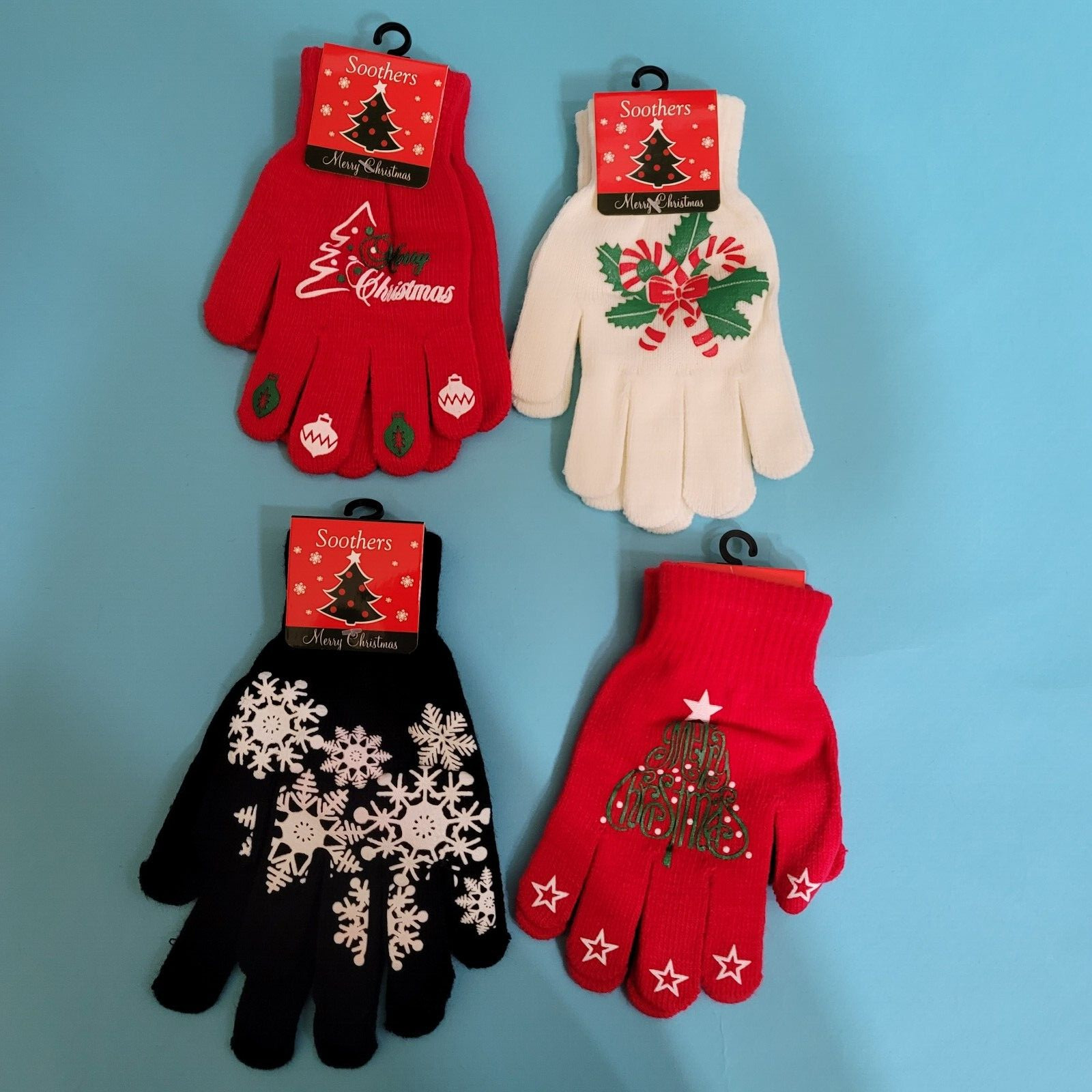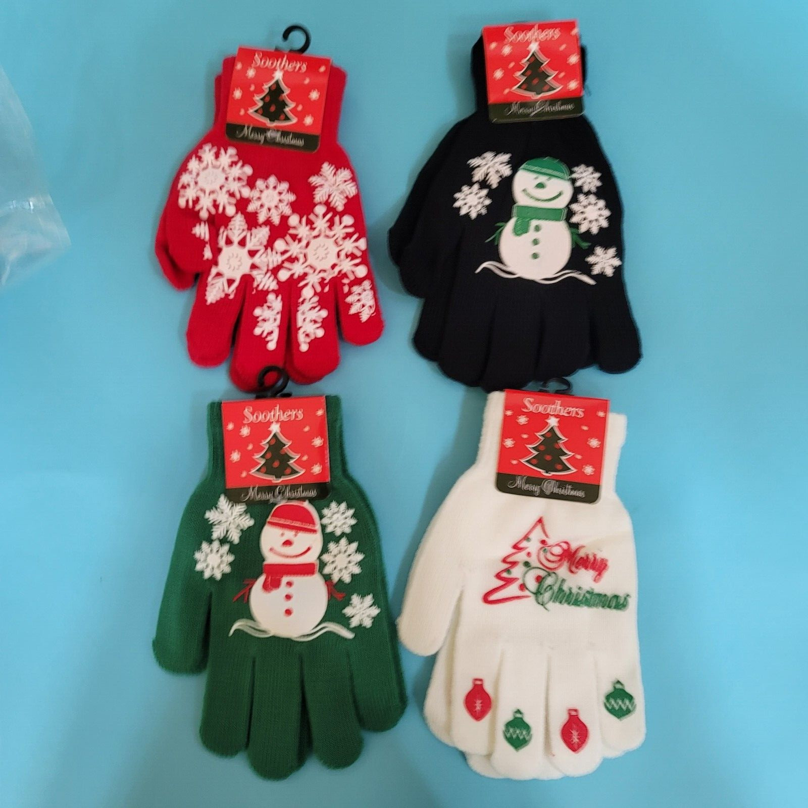 Christmas Gloves - Adults/Kids Knit Gripper-12 Pack-4 designs-Stocking Stuffers