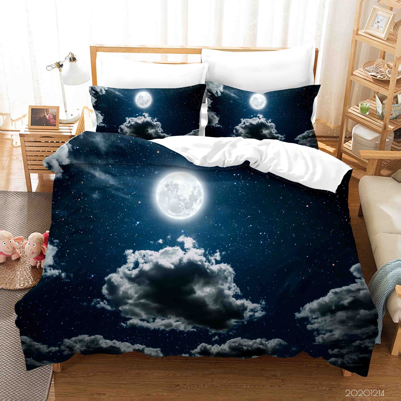 как выглядит 3D Starry Sky Moon Dark Clouds Quilt Cover Set Duvet Cover Bedding Pillowcases фото