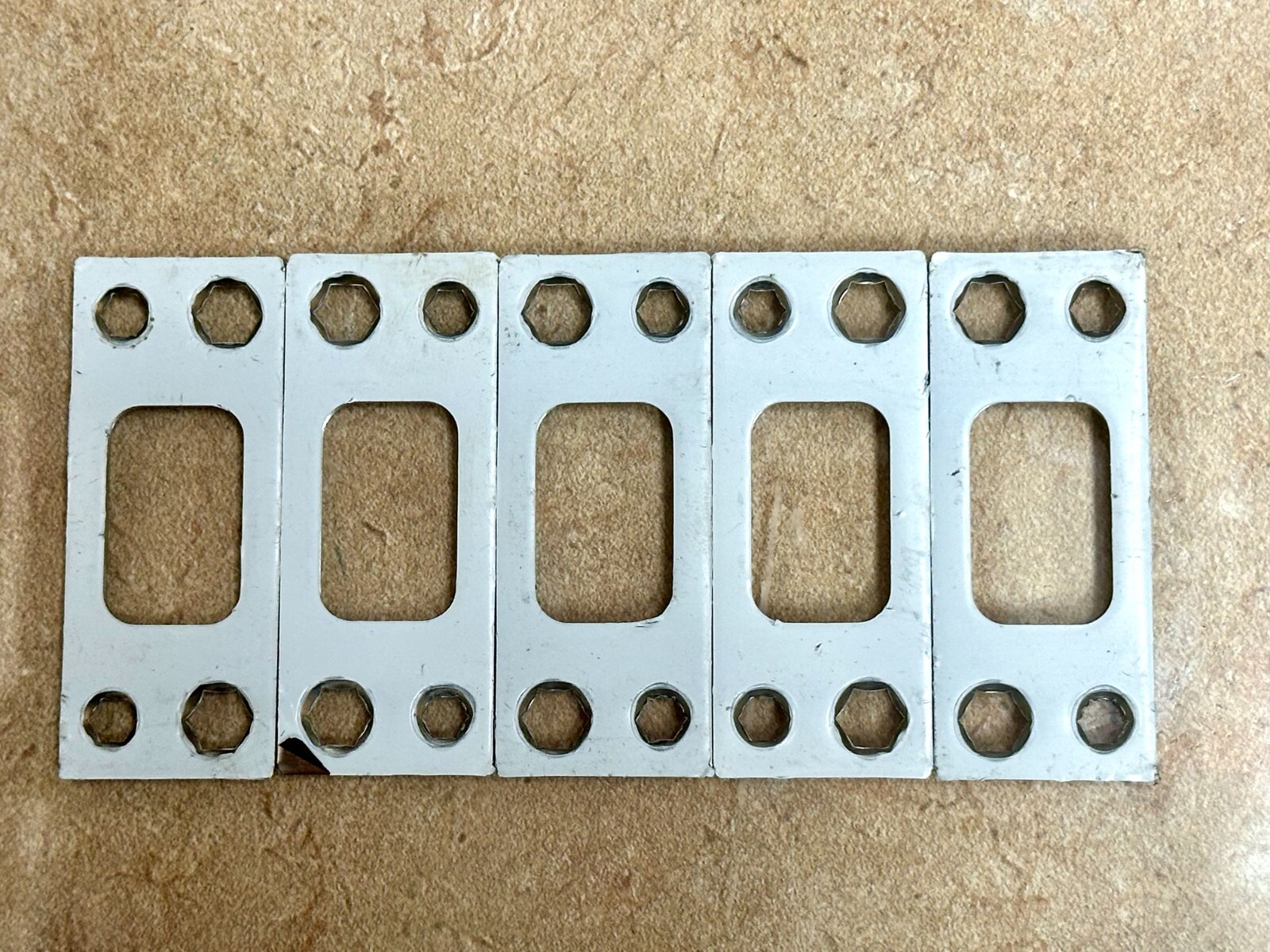 5 PACK NEW FOUR HOLE DEADBOLT STRIKE PLATE, SILVER FINISH,NO HARDWARE INCLUDED