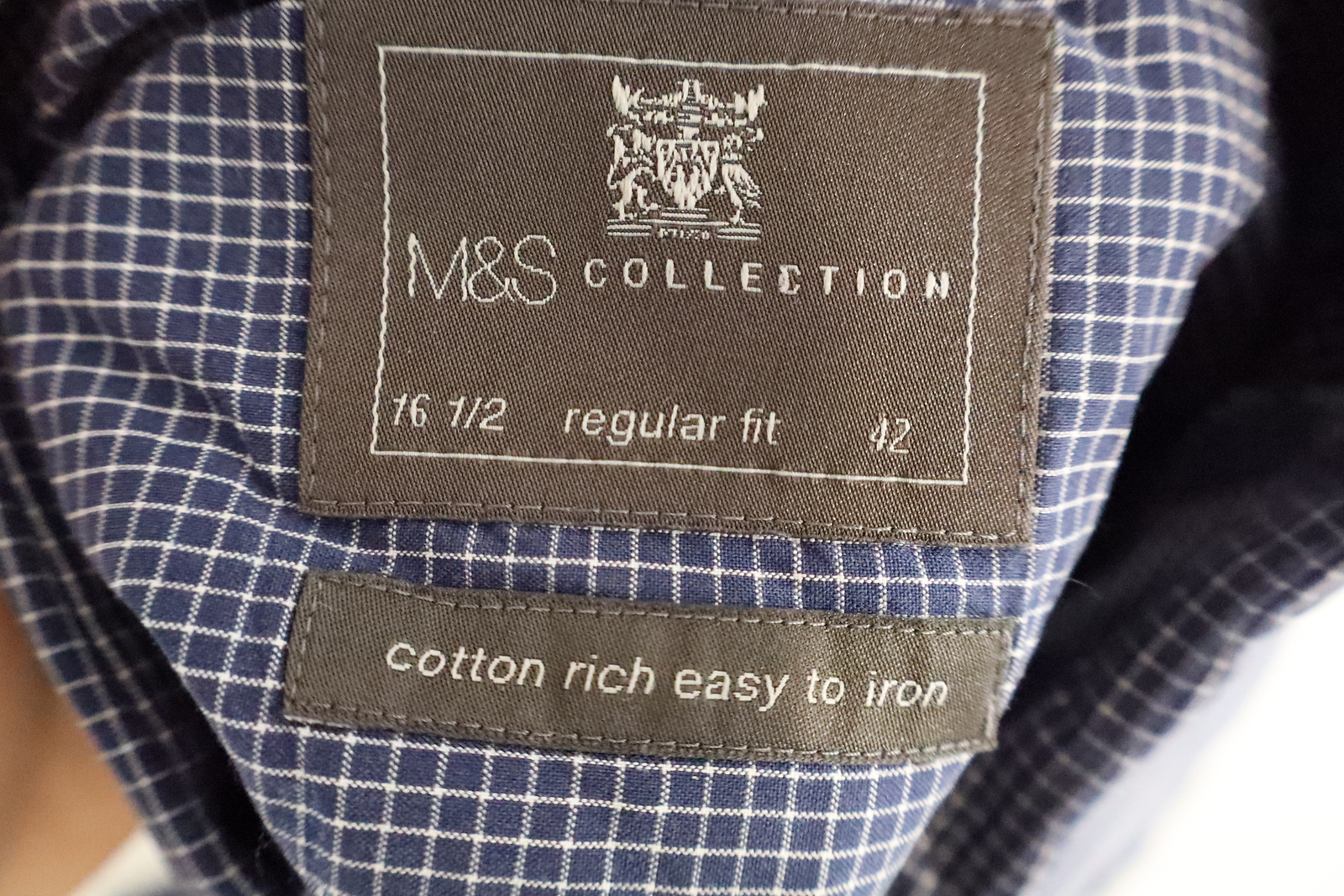 как выглядит M S Cotton Rich Easy Iron Mens Blue Check Shirt 16 1/2 Regular Fit Long Sleeve фото
