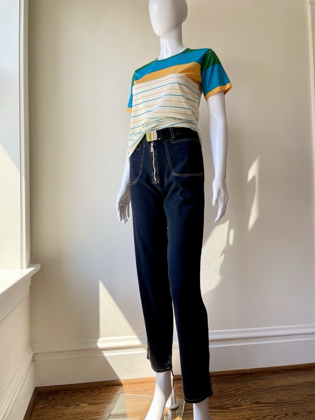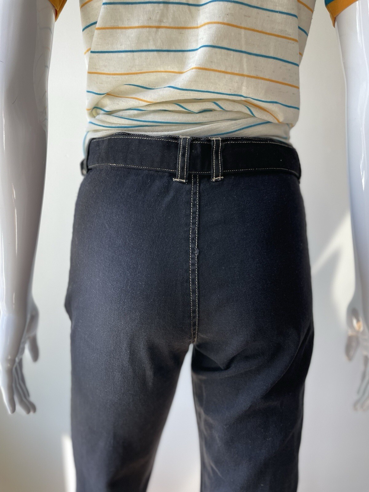 как выглядит Vintage S M 7/8 Black Denim Pants Belt Ankle Straight Scene Skater 90s Y2K VGUC фото