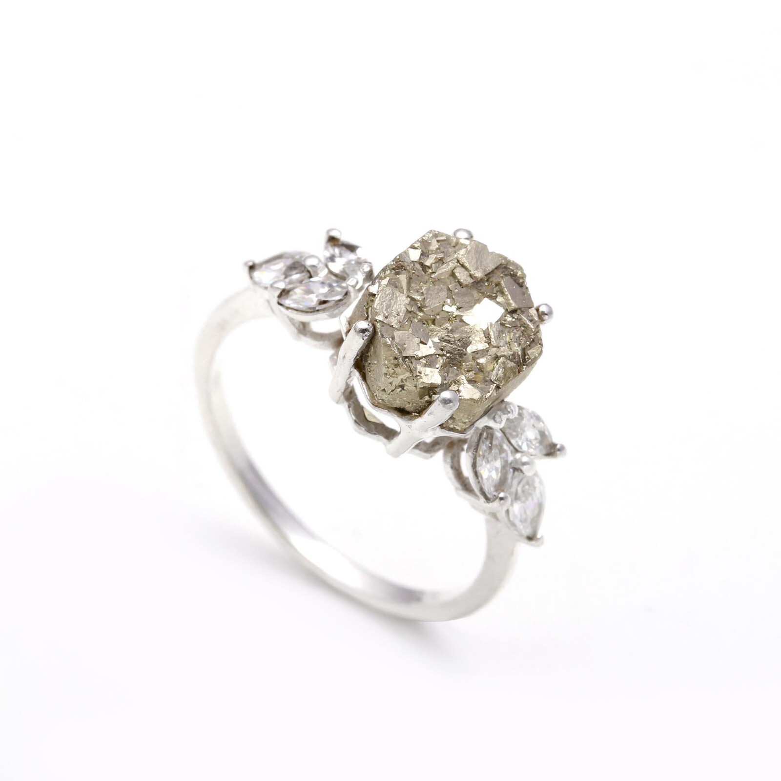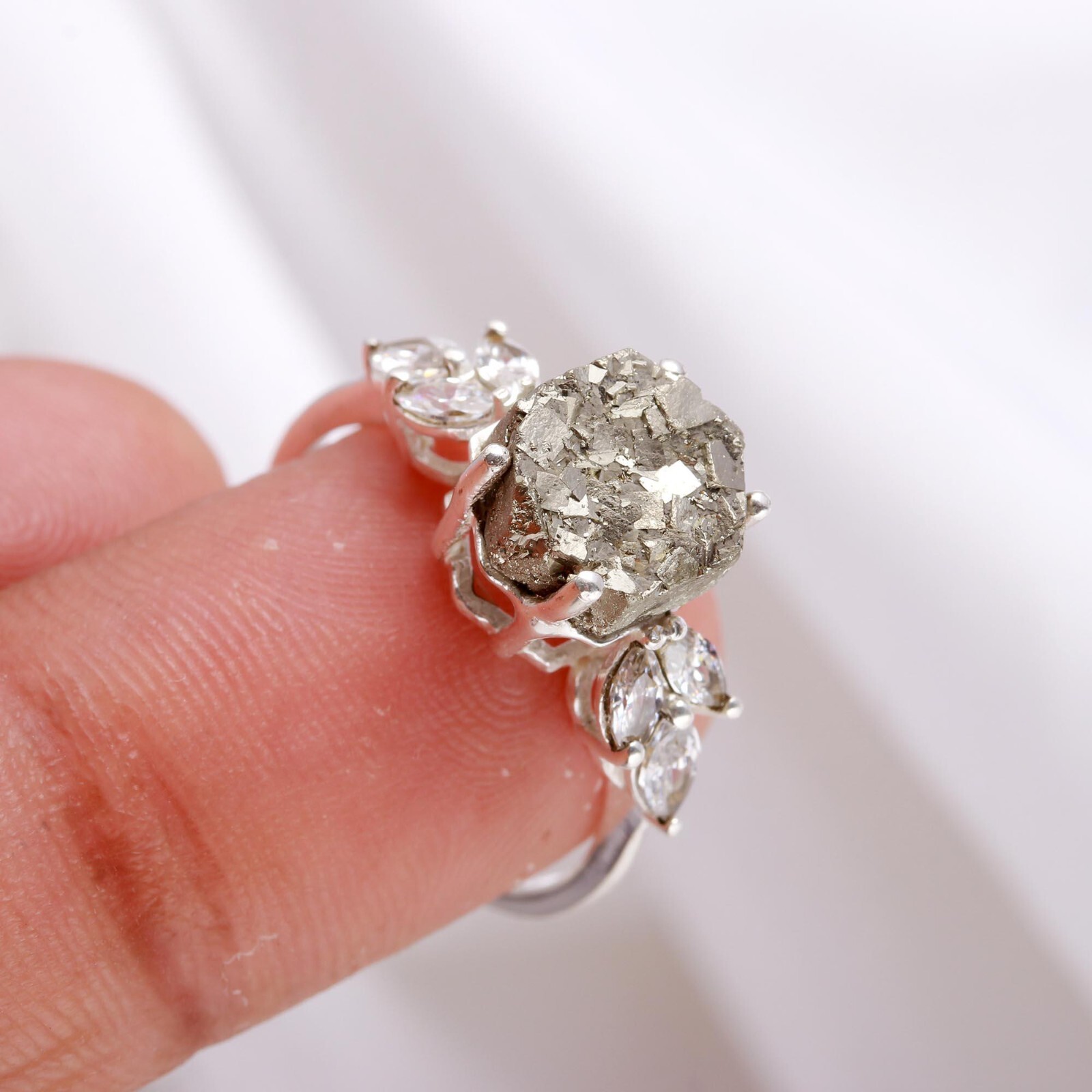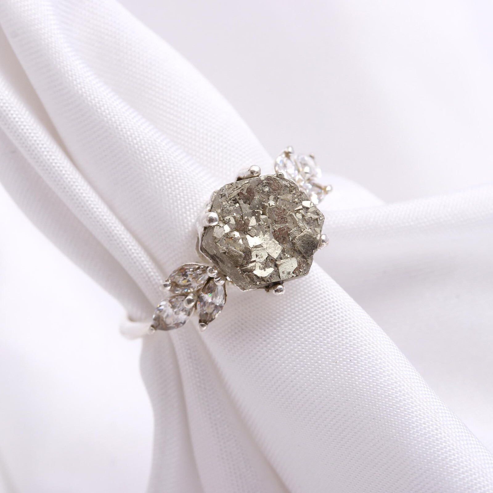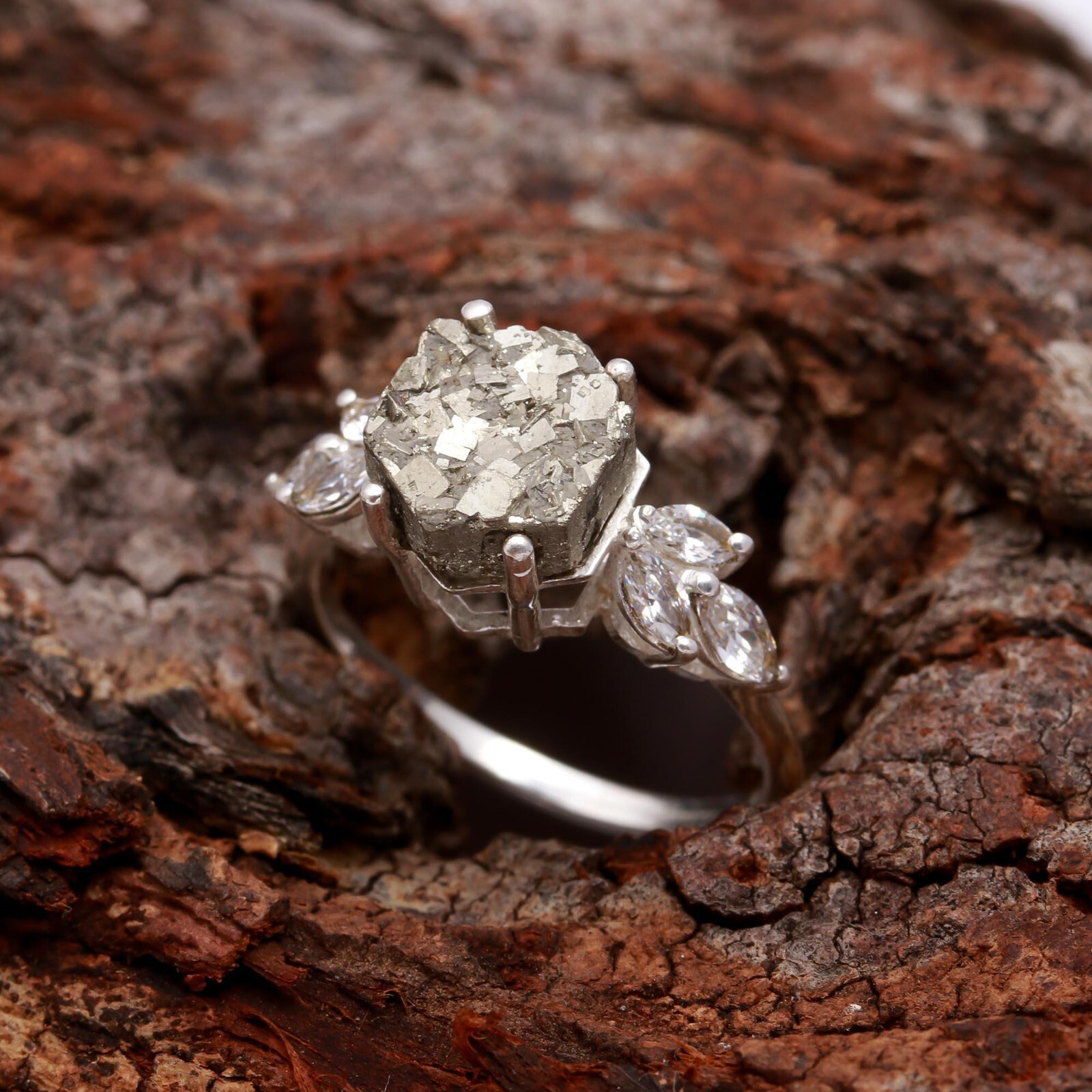 как выглядит AAA Natural Pyrite Hexagon Shape Wedding Ring 925 Sterling Silver Dainty Jewelry фото