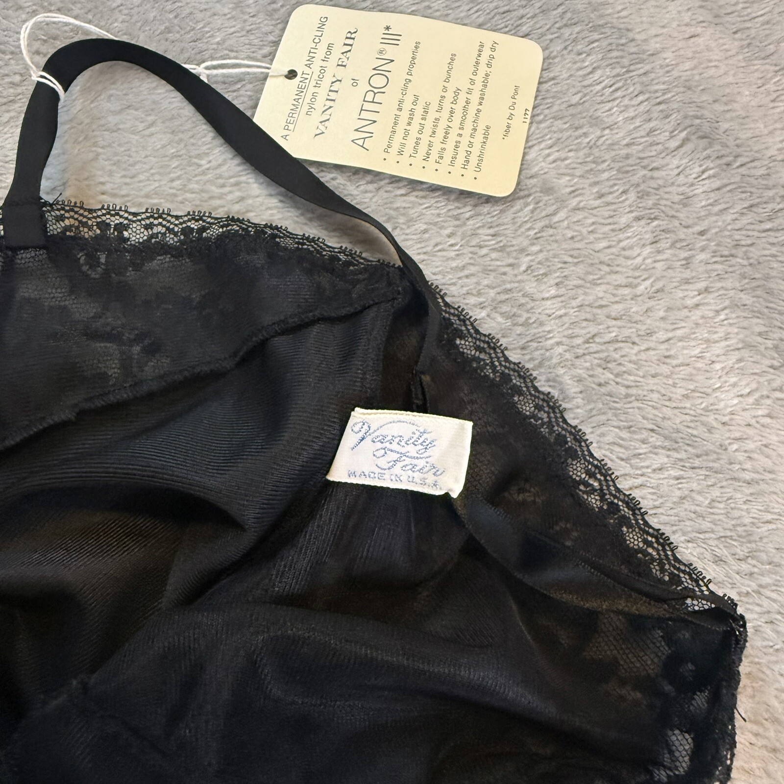 Vintage Vanity Fair USA Black Full Slip 32 Small Nylon Metal Hardware Lace NWT