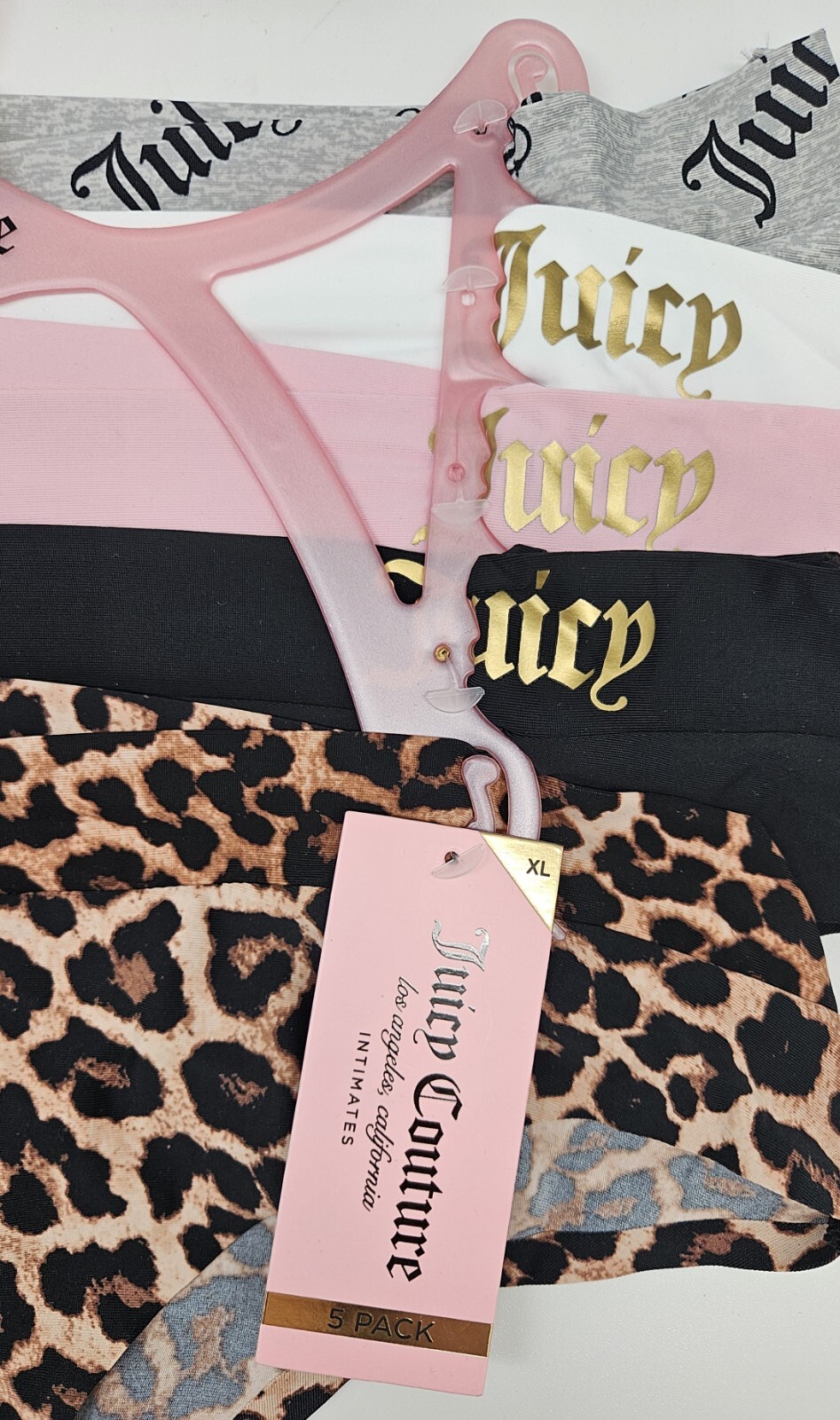 JUICY COUTURE 5 Pk Women's L XL No Lines Panties Black Pink Gray White Brown