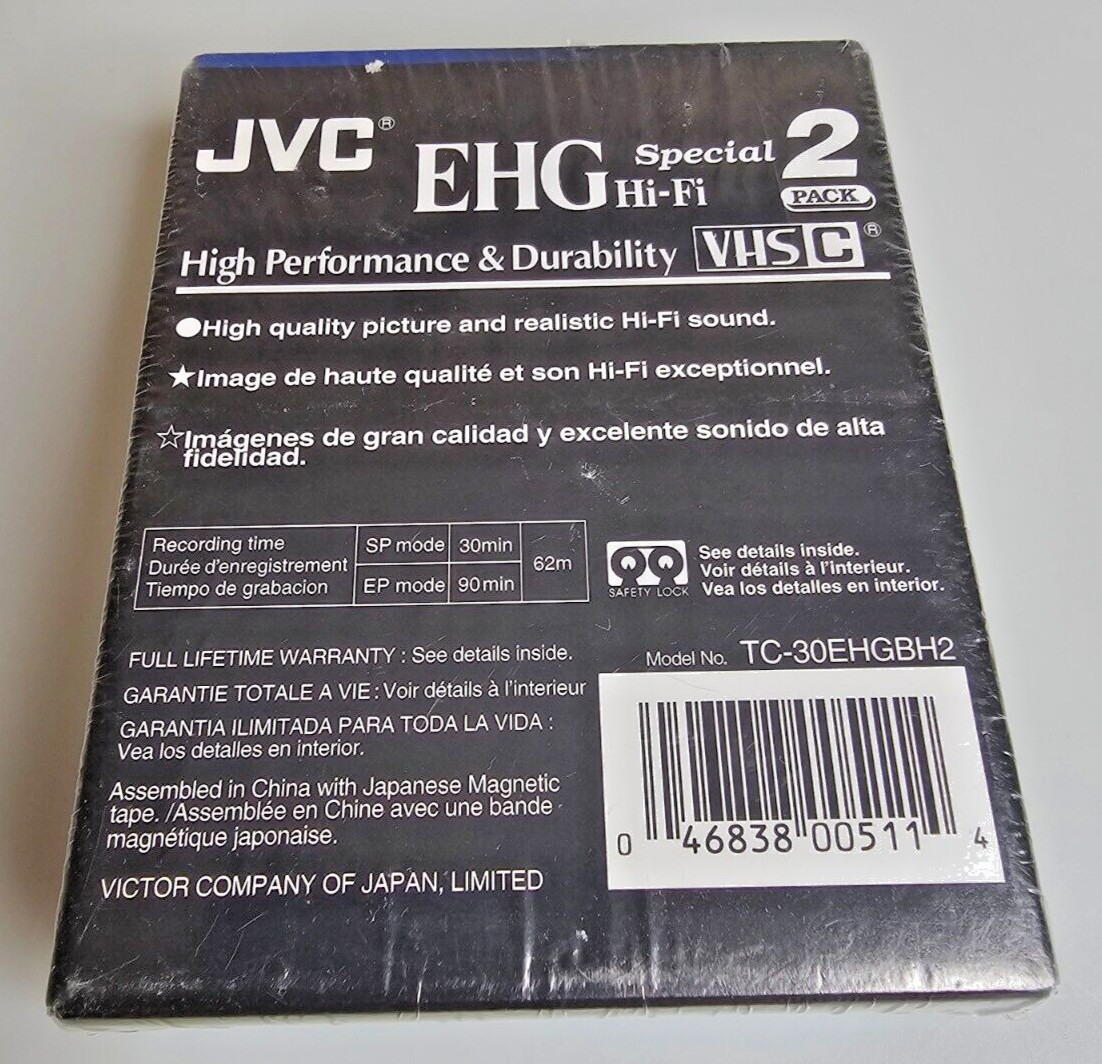 JVC TC-30EHGBH2 Hi-Fi Compact VHS-C - 2 pack - NEW