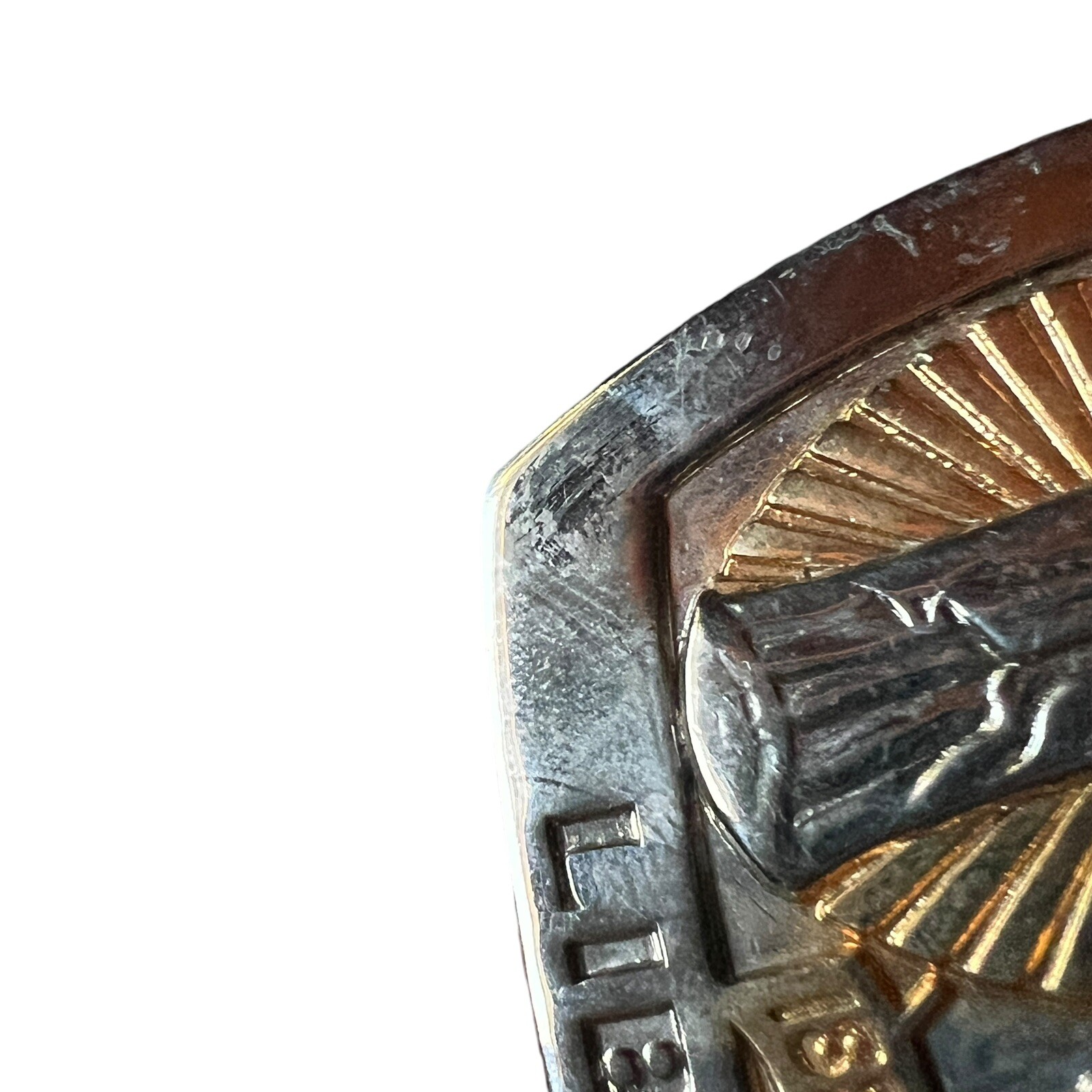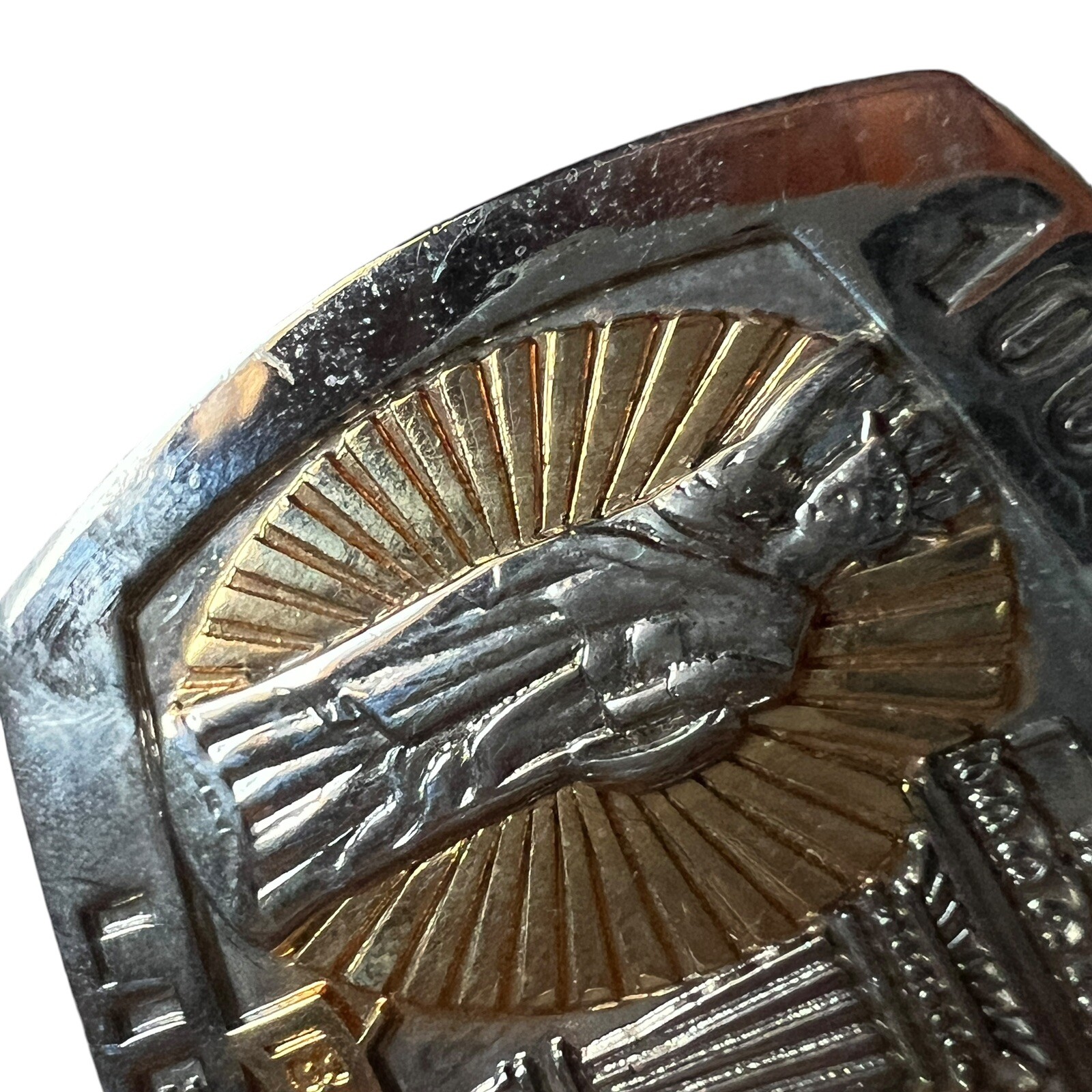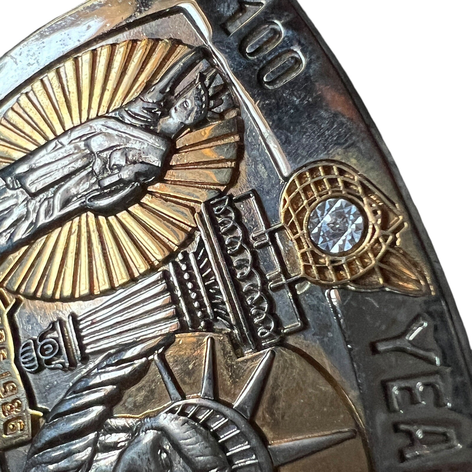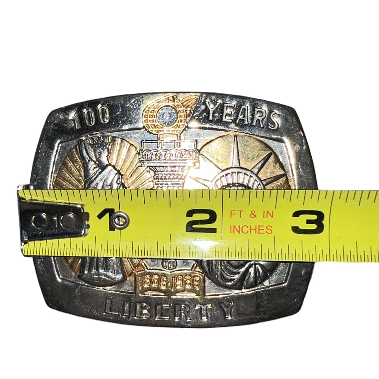 как выглядит Vintage Liberty Sterling Treasury Belt Buckle 1886 1986 100 Years Liberty Lady фото