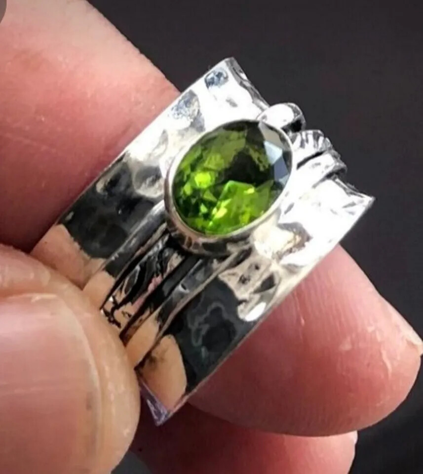 как выглядит Peridot Gemstone 925 Sterling Silver Spinner Ring Handmade Jewelry All Size C392 фото