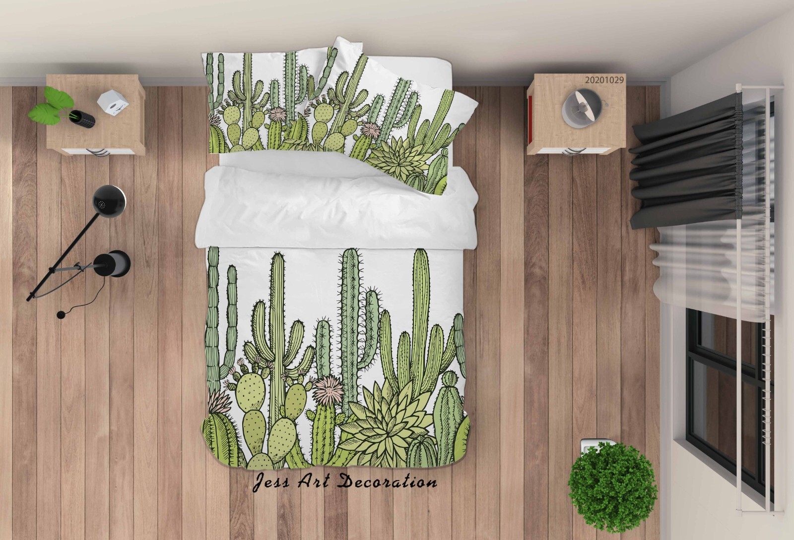как выглядит 3D Floral Cactus Thorn White Quilt Cover Set Duvet Cover Bedding Pillowcases фото