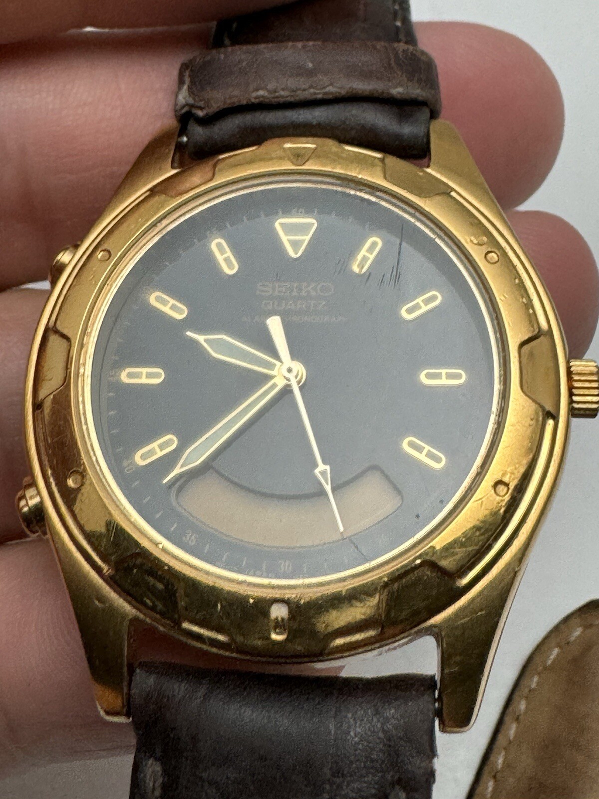 как выглядит VTG Seiko Analogue/Digital Chronograph Watch Gold Tone Black Dial H801-7001 READ фото