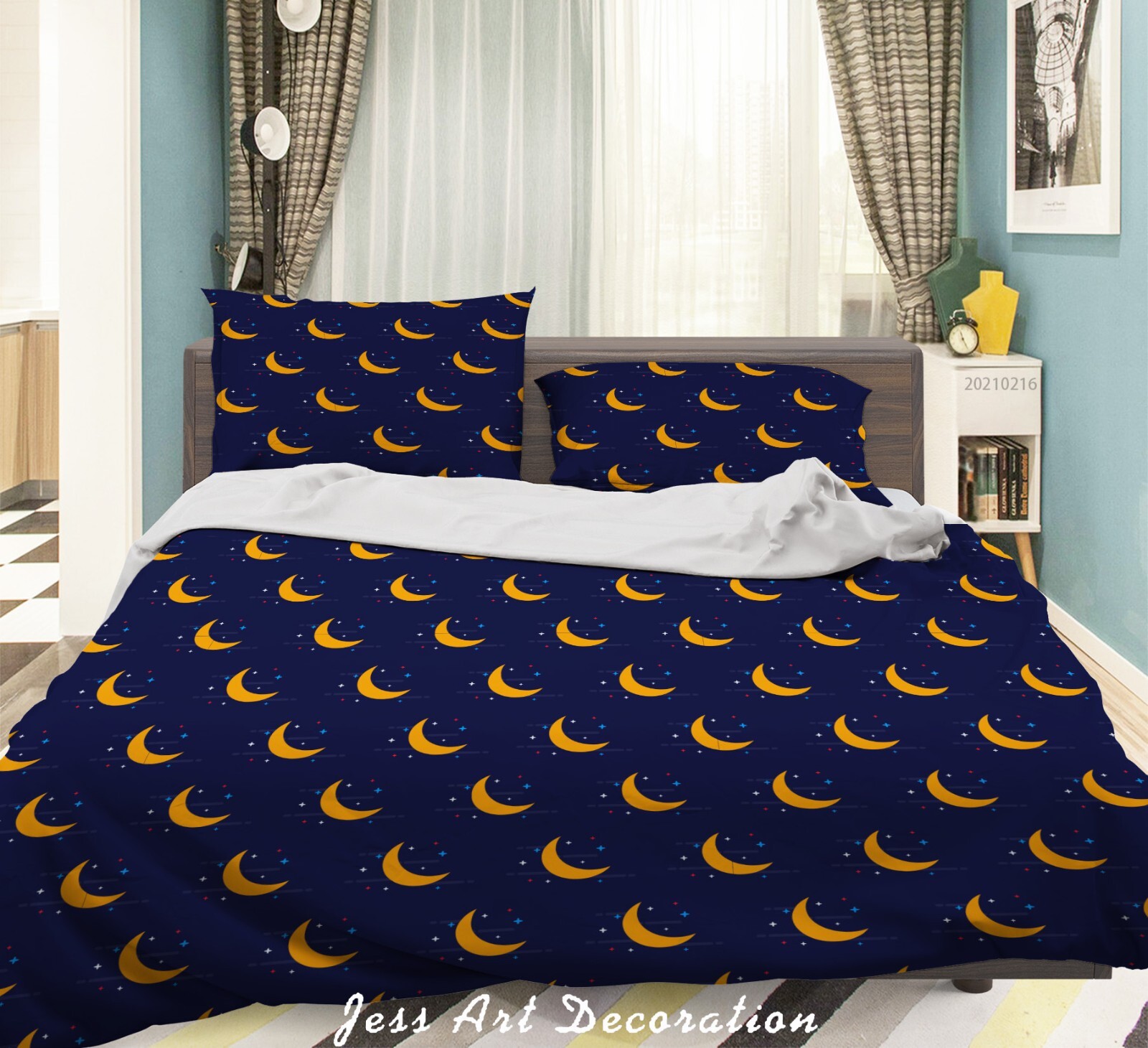 как выглядит 3D Moon Star Pattern Quilt Cover Set Duvet Cover Bedding Pillowcases фото