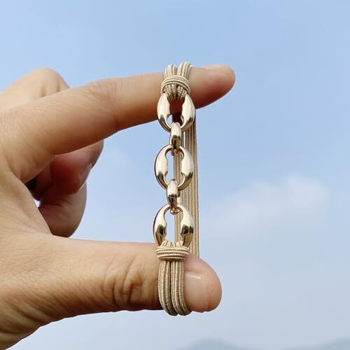Blonde Hair Ties Bracelet No Damage for Women, Cute Elastic Ponytail Khaqi-02