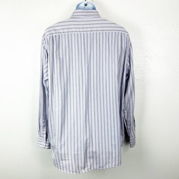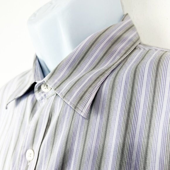 как выглядит Michael Kors Dress Shirt Men Extra Large Purple Striped Long Sleeve Button Down фото