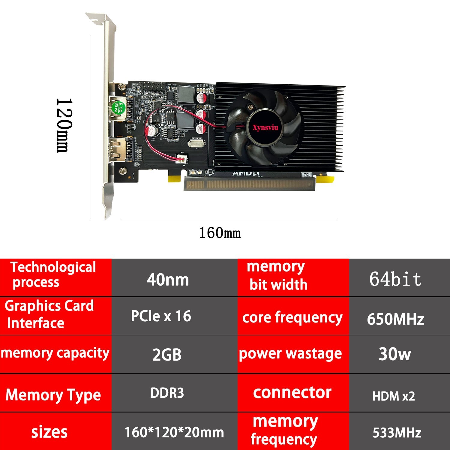 Xynsviu Radeon HD 6570 2G Graphics Card, GPU Support HDMI 2 Monitor Output