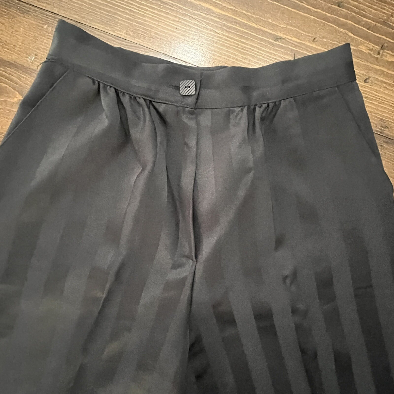 как выглядит Vintage 90s Women s Black Striped Pleated High Waisted Trousers Pants Made USA фото