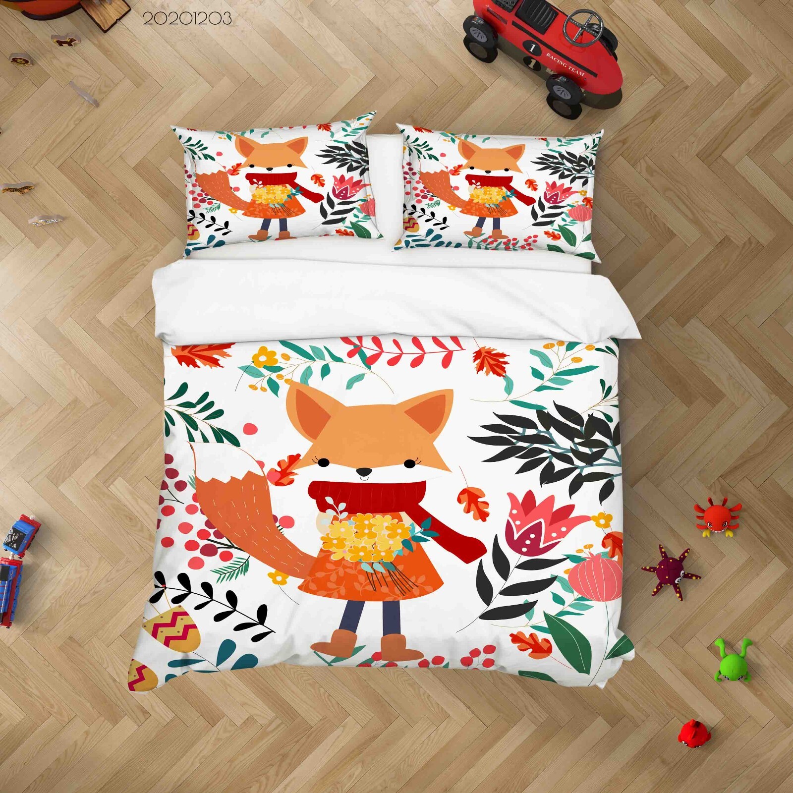 3D Floral Leaf Fox Branch Quilt Cover Set Duvet Cover Bedding Pillowcases 1758