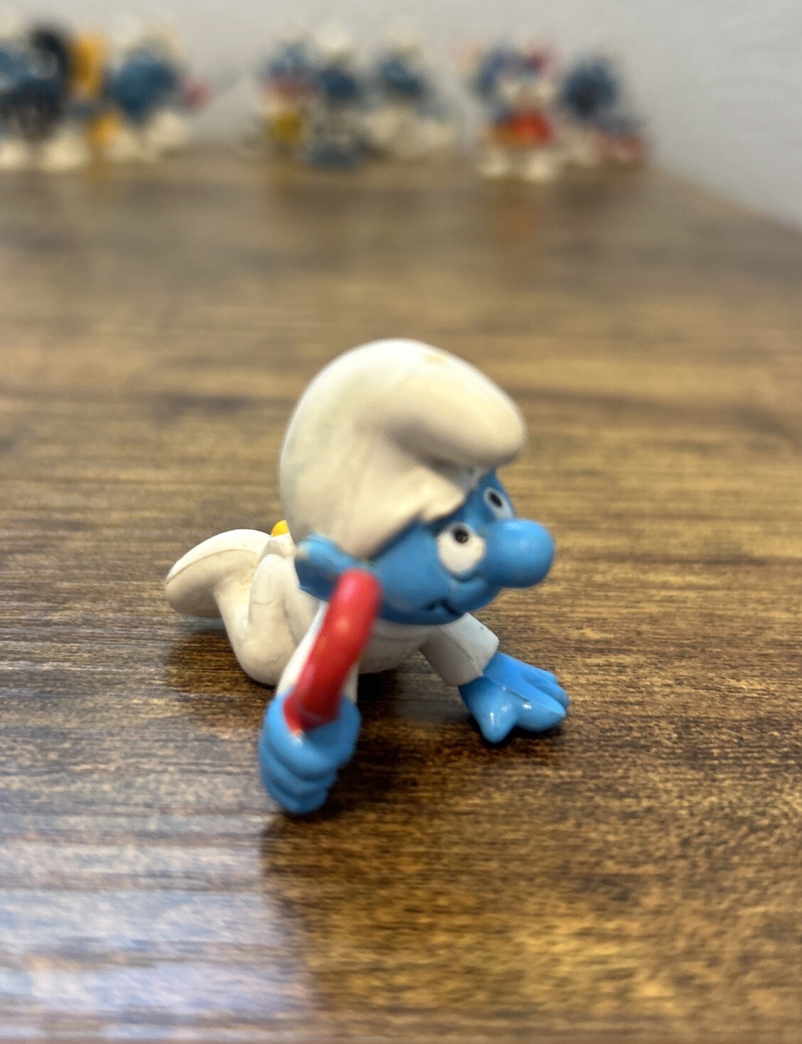 • Smurfs 20203 Baby Smurf White Pajamas Figure w/Red Rattle 1984 Vintage Peyo Toy