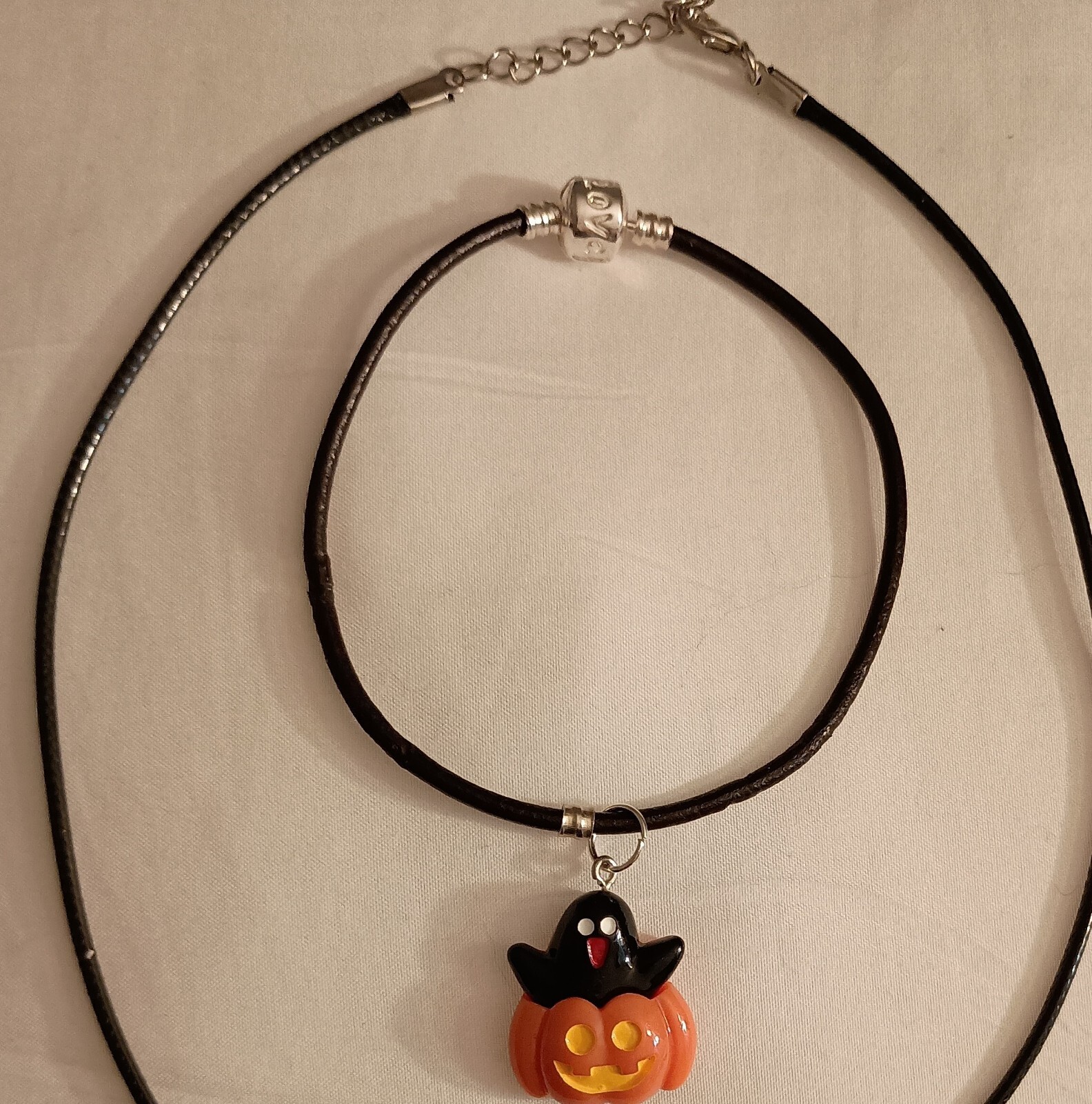 как выглядит Halloween/fall Pumpkin Necklace Matching Bracelet, Black. kids/adults фото