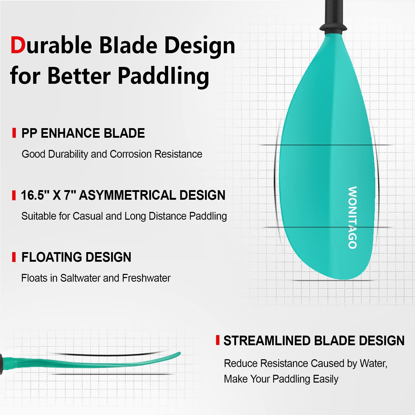 Kayak Paddles with Alloy Shaft and PP Blade, Floating Kayaking Oars, Adjustab...