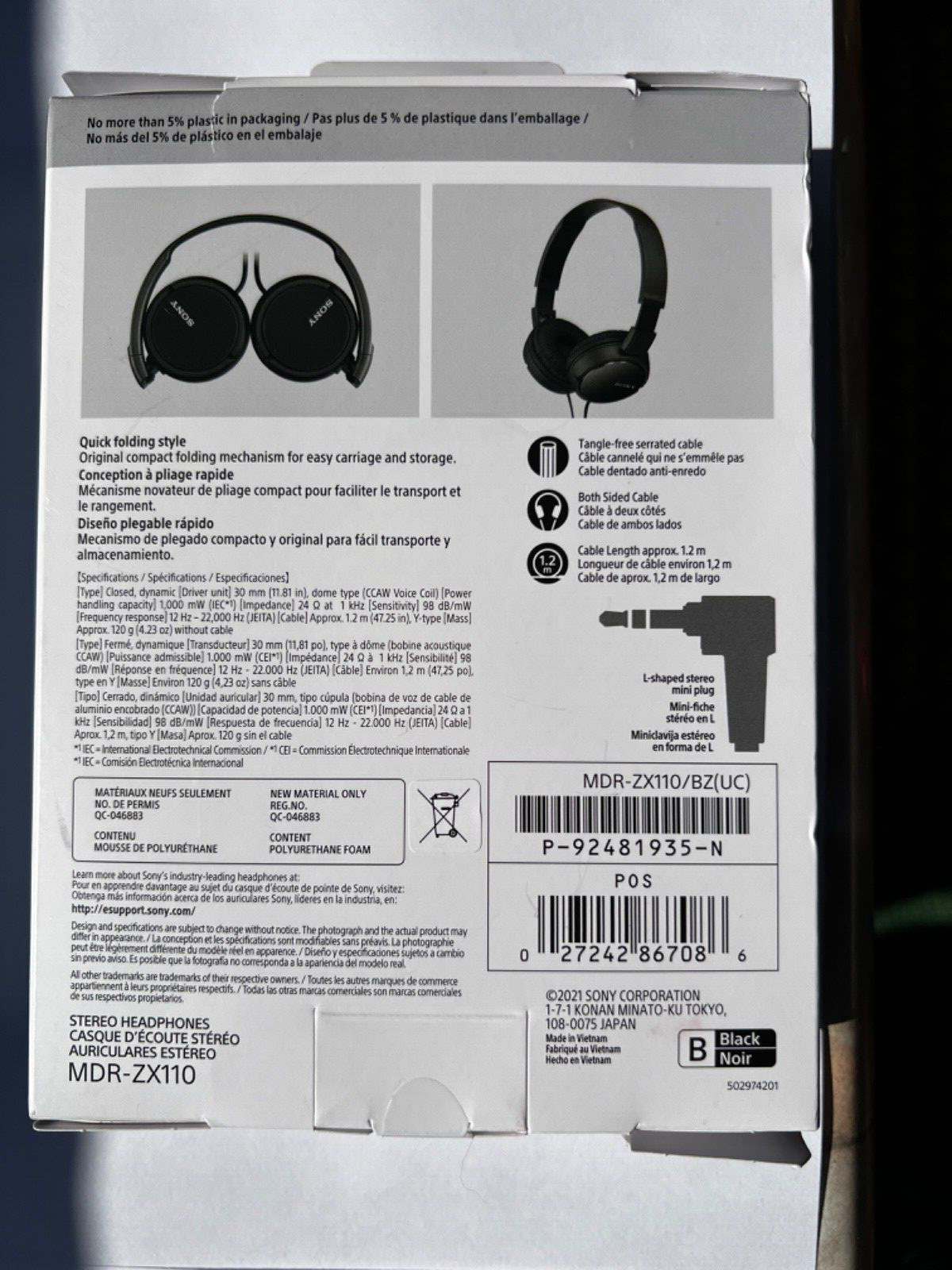 как выглядит Sony MDRZX110 Monitor Headphones - Black фото