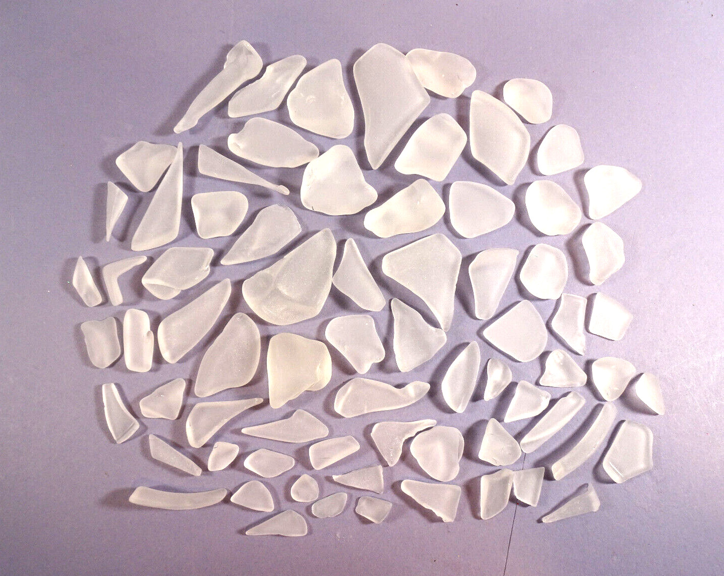 70 pcs FROSTED CLEAR GLASS Machine Tumbled Mosaics Mixed Media Crafts