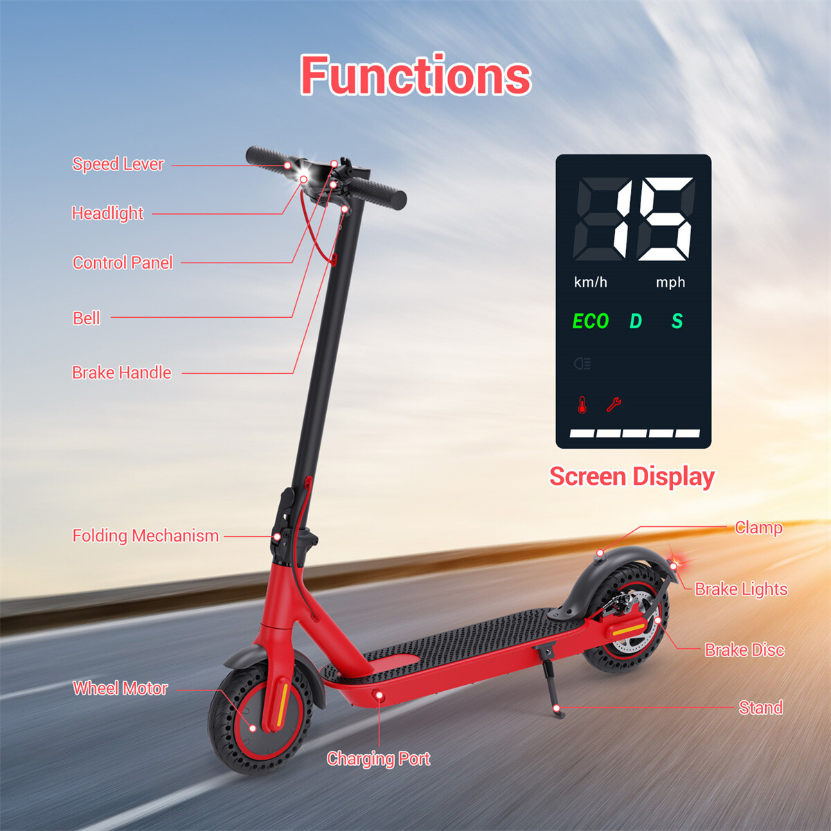 350W Adult Foldable Electric Scooter 15mph Max Speed Motor 8.5 Tires 20M Range
