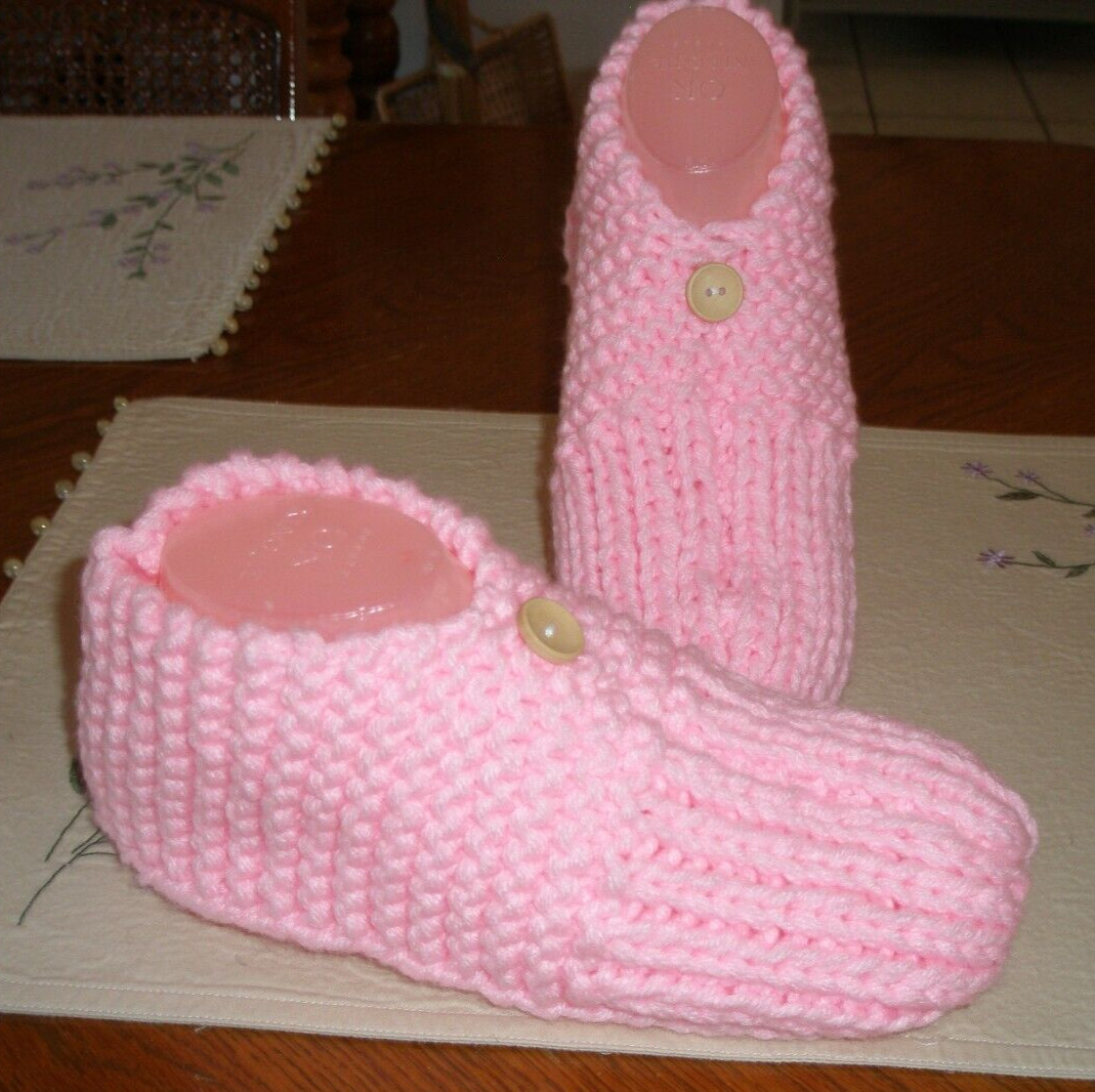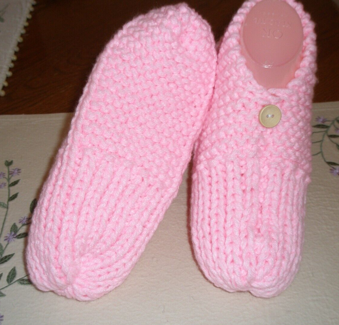 HAND KNITTED WOMAN SLIPPERS SIZE - LARGE 10 - 11 w/ONE BUTTON NEW