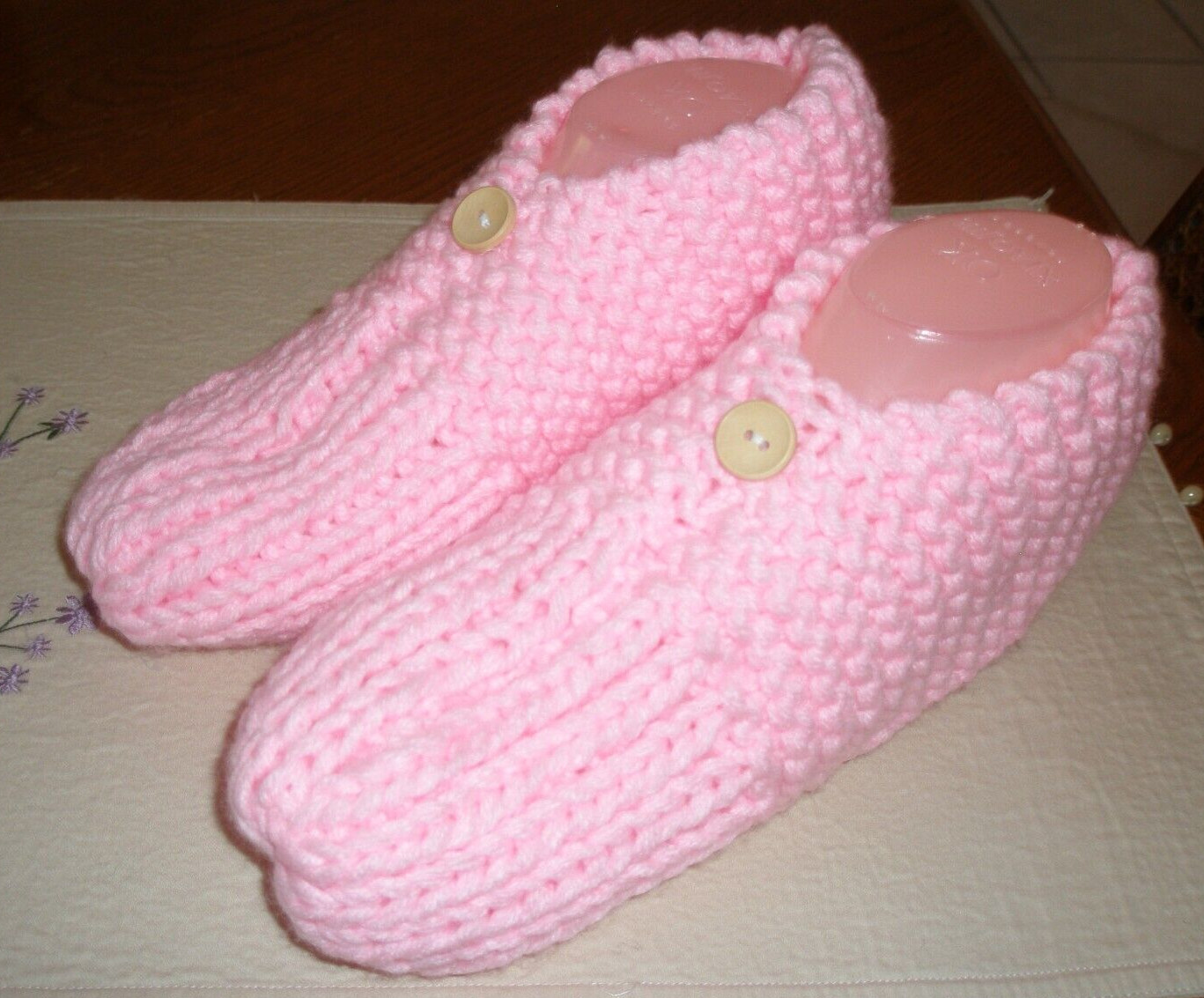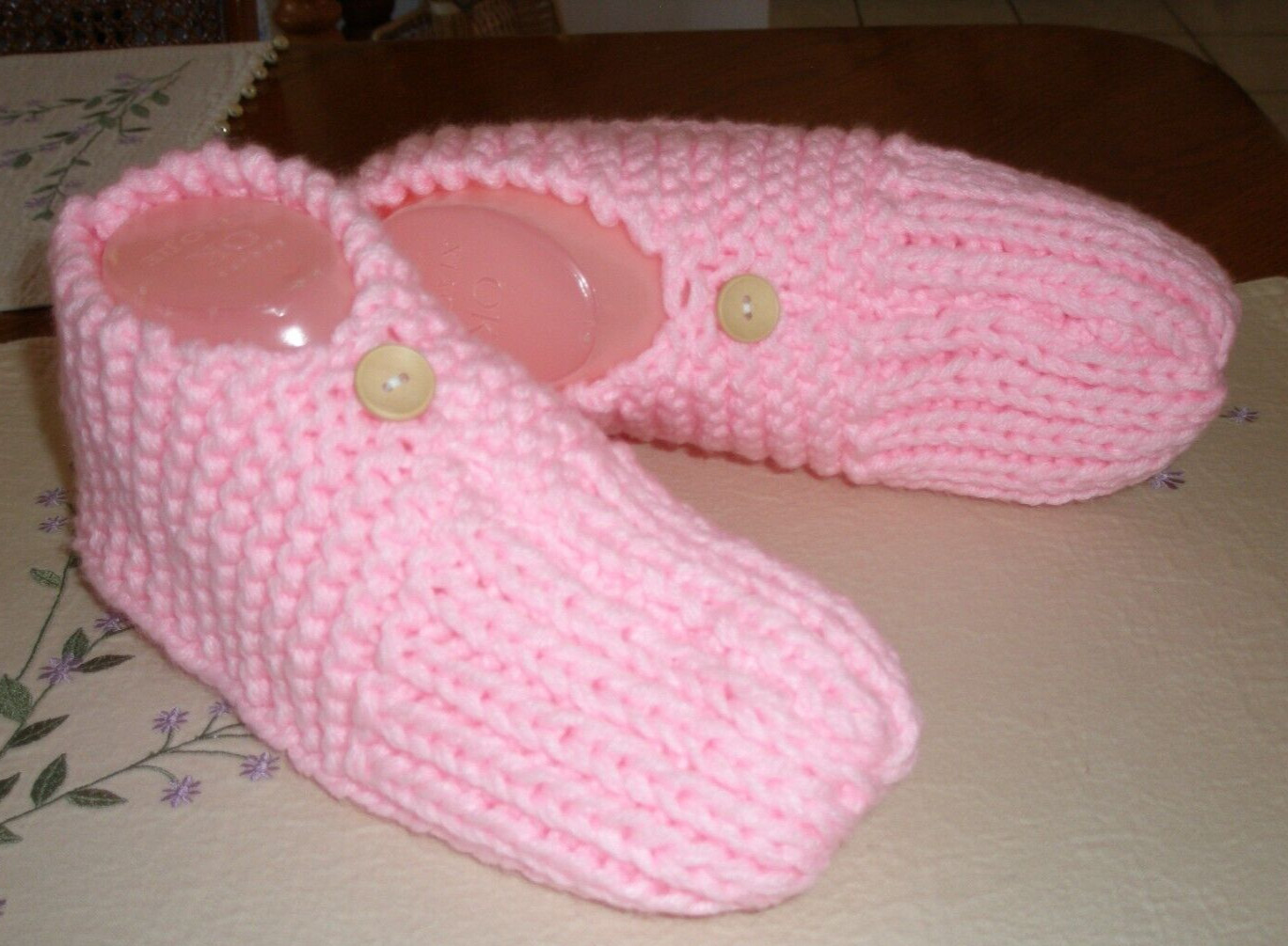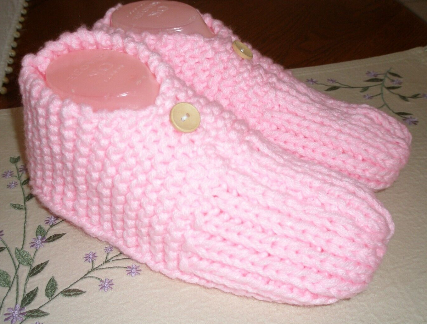как выглядит HAND KNITTED WOMAN SLIPPERS SIZE - LARGE 10 - 11 w/ONE BUTTON NEW фото