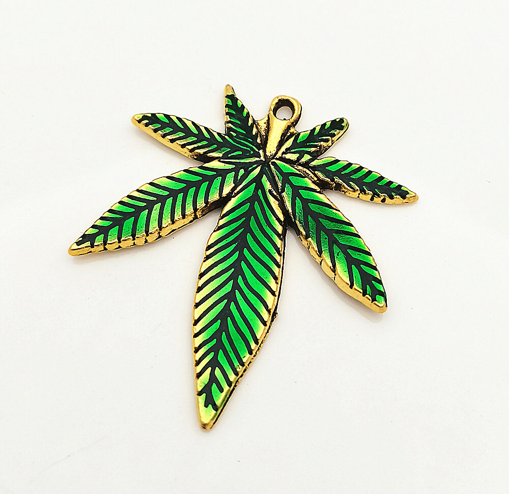 как выглядит Wholesale 10Pcs Gold Tone Metal Green Enamel Marijuana Leaf Charm Pendants фото