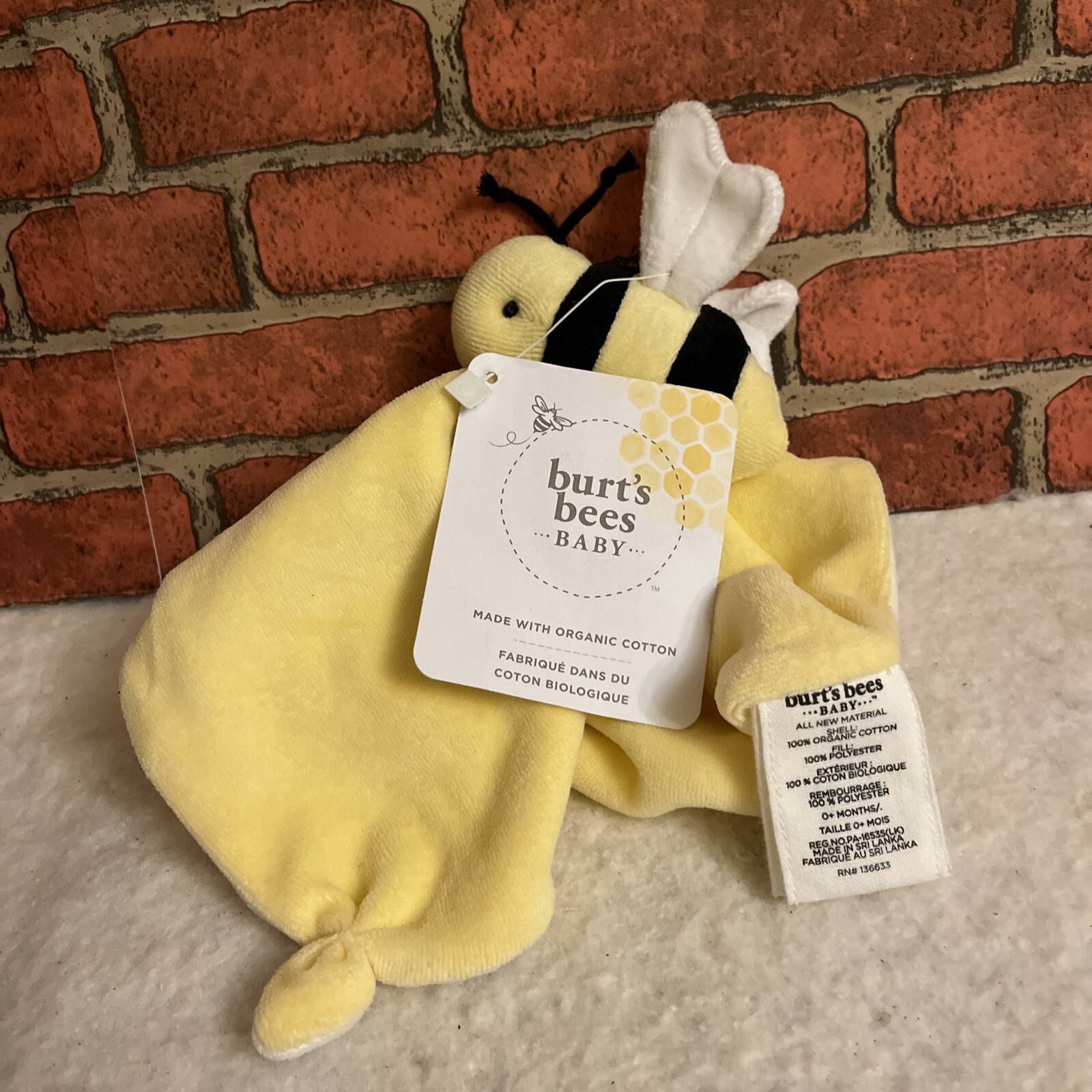 Burts Bees Lovey Bumble Bee Baby Security Blanket Yellow Lovie Organic Cotton