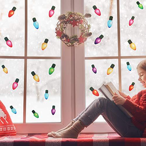 91 Pieces Christmas Wall Stickers Christmas PVC Merry Christmas Lights Bulb