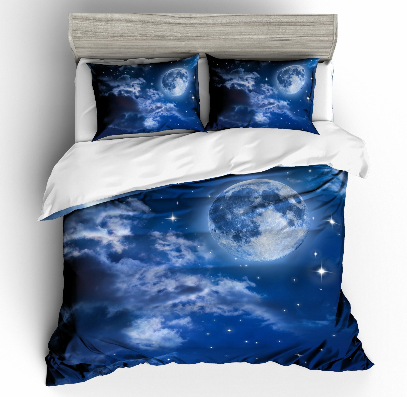 как выглядит 3D Starry Moon Clouds Blue Quilt Cover Set Duvet Cover Bedding Pillowcases фото