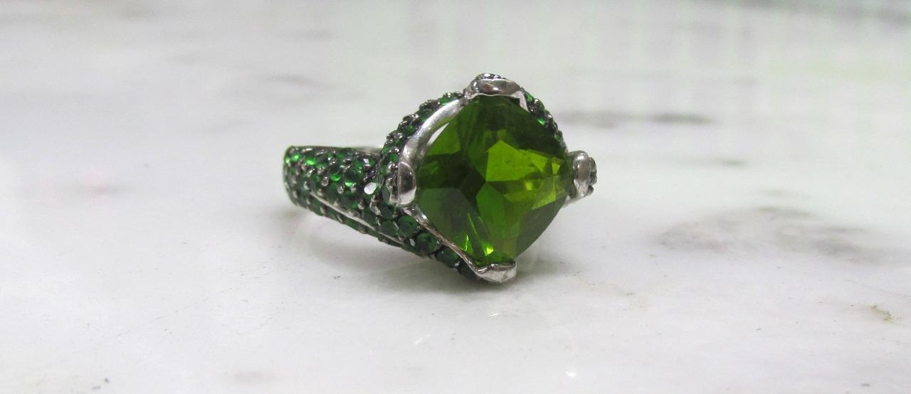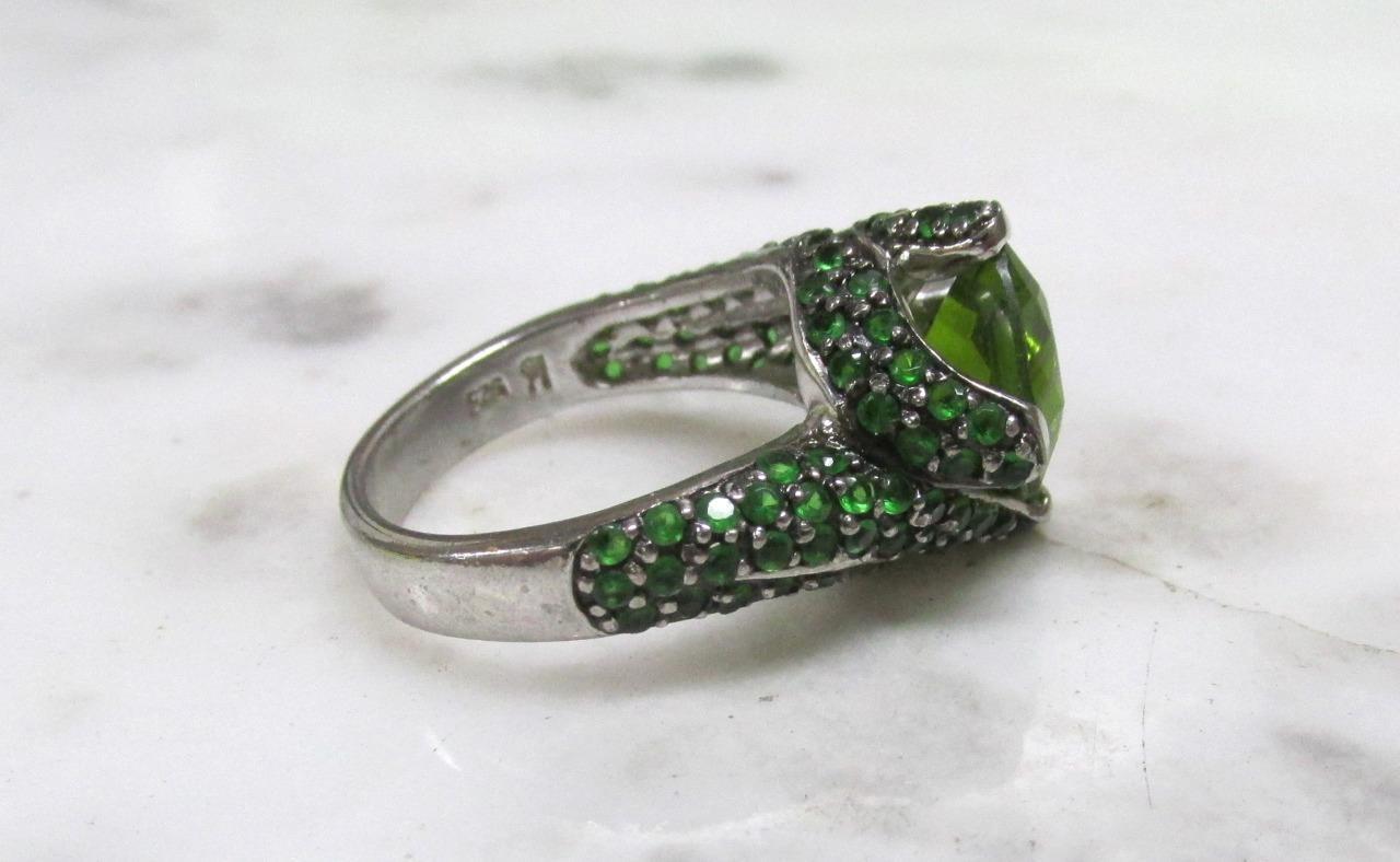 как выглядит Beautiful Green Stones Sterling Silver Cocktail Ring Size 7 7.6g 7-C428 фото