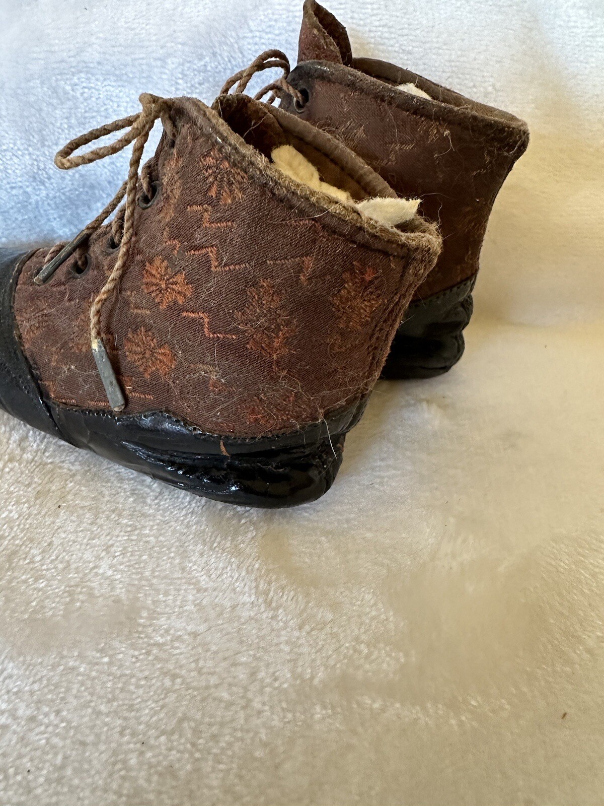 Vintage Victorian Antique Childrens Toddler Tie Shoes Black Brown