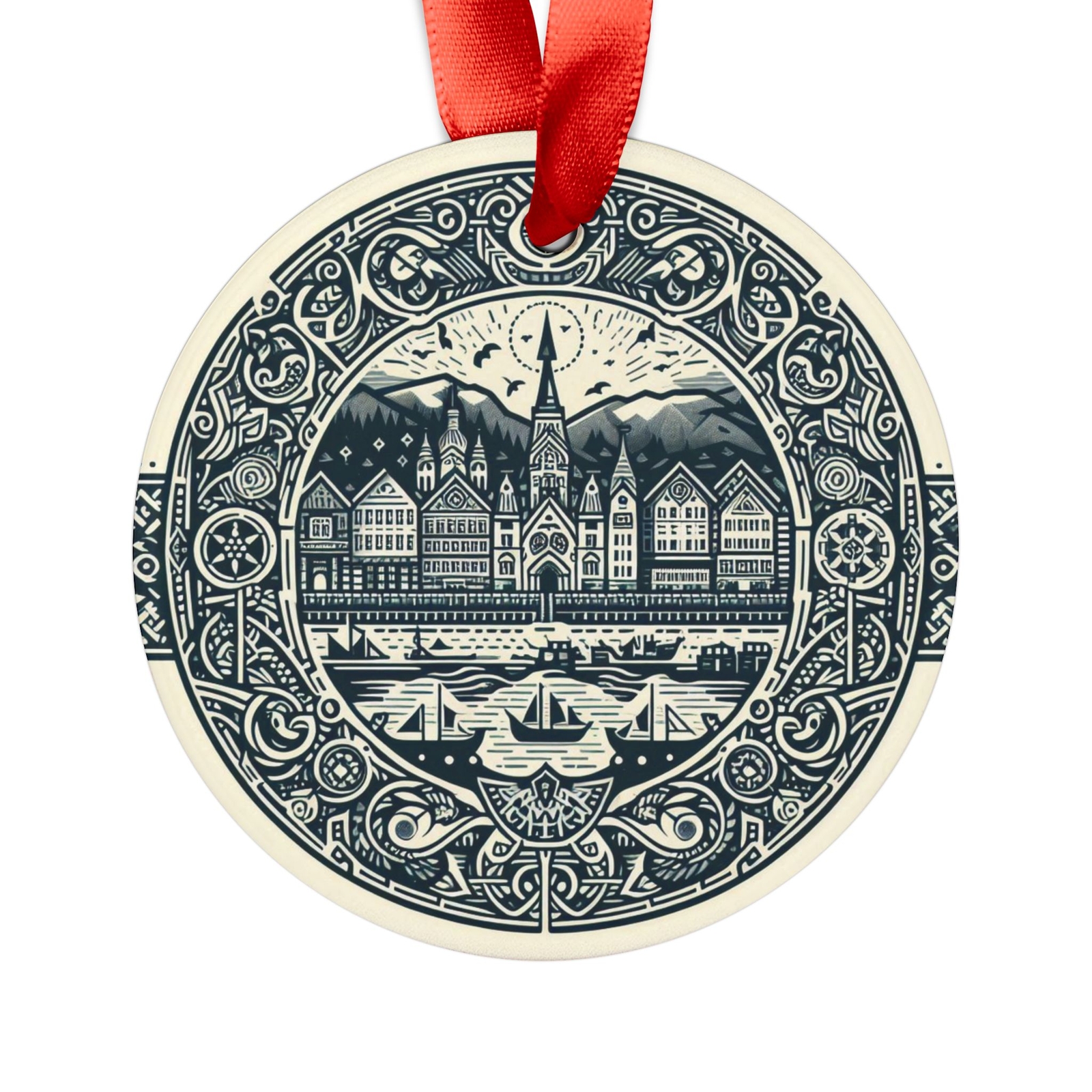 как выглядит BERGEN NORWAY, Norwegian Travel, Personalized Round Acrylic Ornament Gift фото