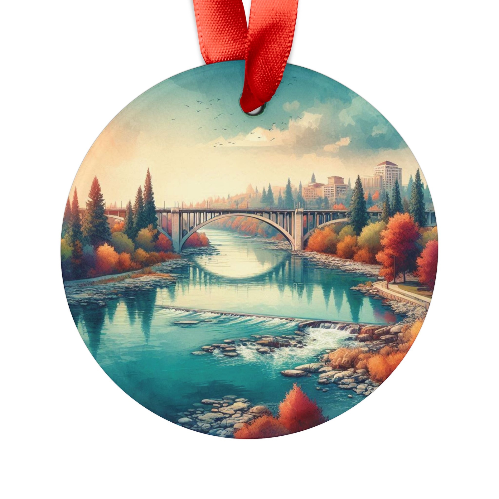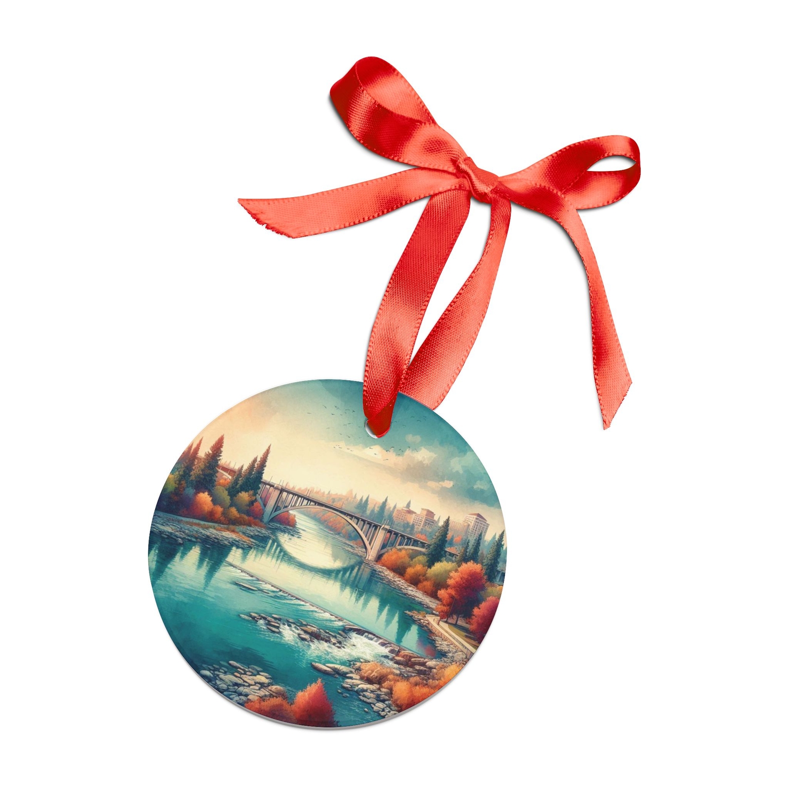 как выглядит SPOKANE WASHINGTON River View, Personalized Gift, Christmas Tree Ornament фото