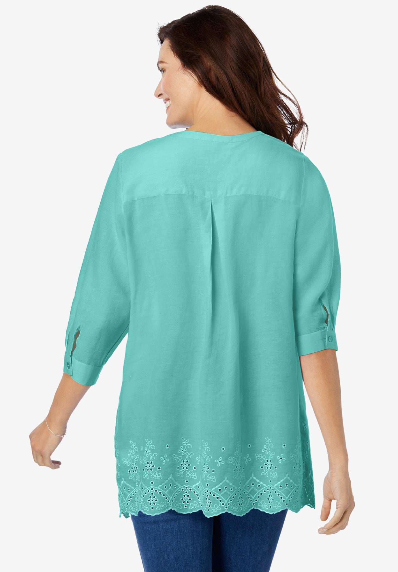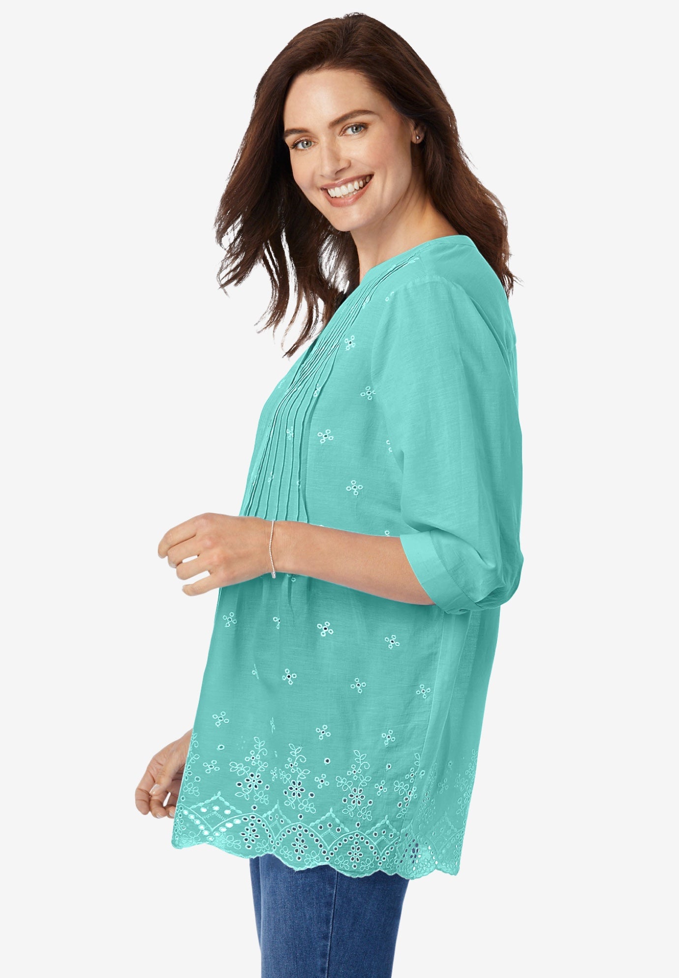 Woman Within Plus Size Embroidered Pintuck Tunic