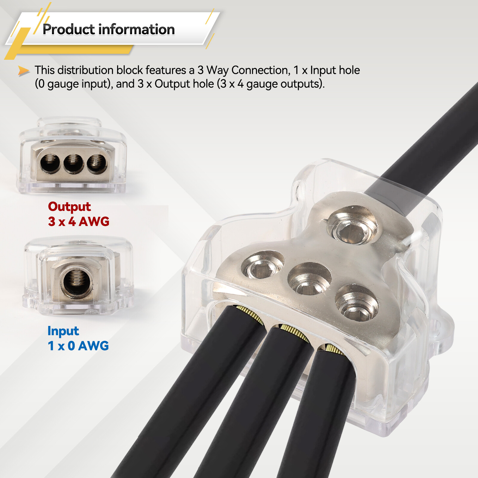 3-Way Car Power / Ground Wire Distribution Block for Audio Amp Systems 0GA 4GA